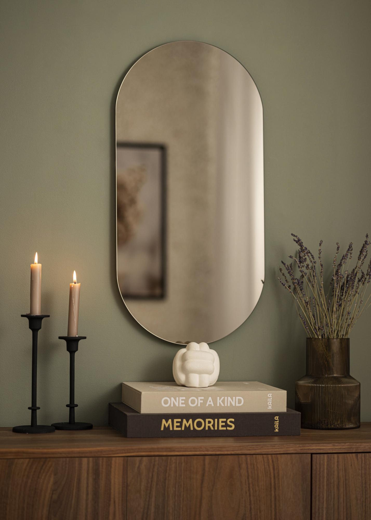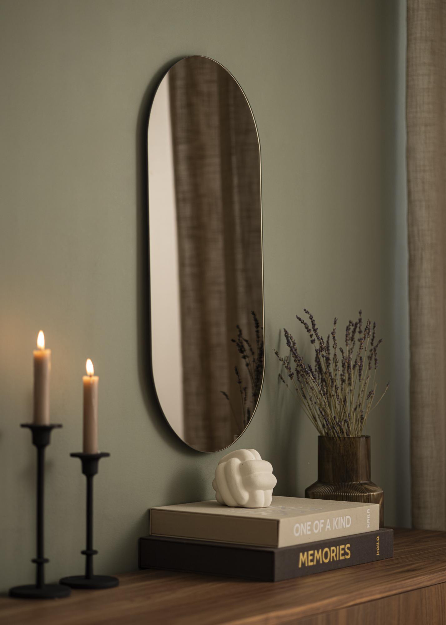 An oval mirror creates a soft and elegant impression in your home. Furthermore, this oval mirror has toned mirror glass in a stylish dark bronze shade. This striking and fashionable detail is combined with a sleek design, as the mirror is both thin and frameless. The result is an eye-catching, modern and elegant decorative detail that can be placed in any room where you want to add functional and trendy Nordic design!