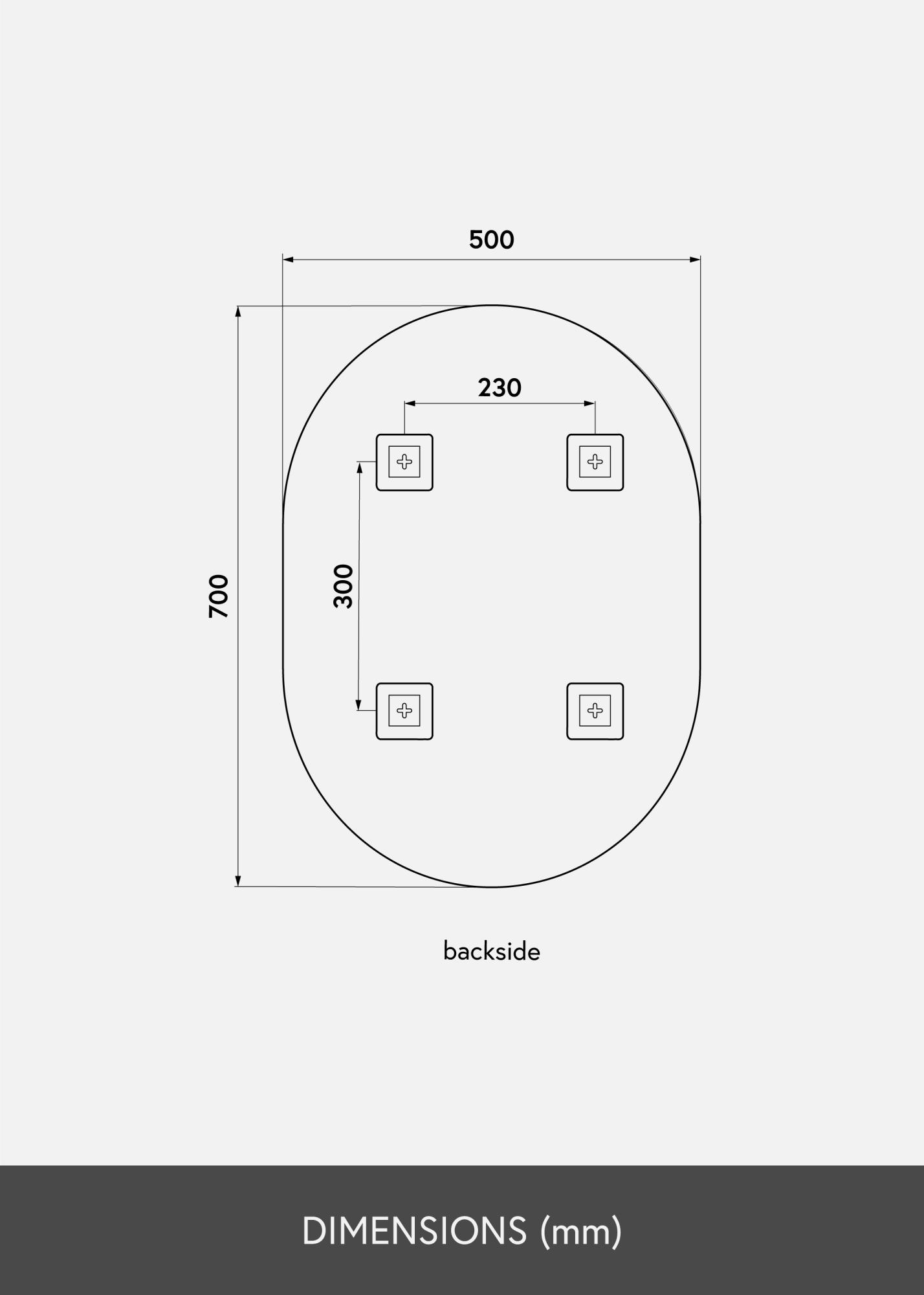 This oval mirror comes in several sizes, of which this is size 50x70 cm.