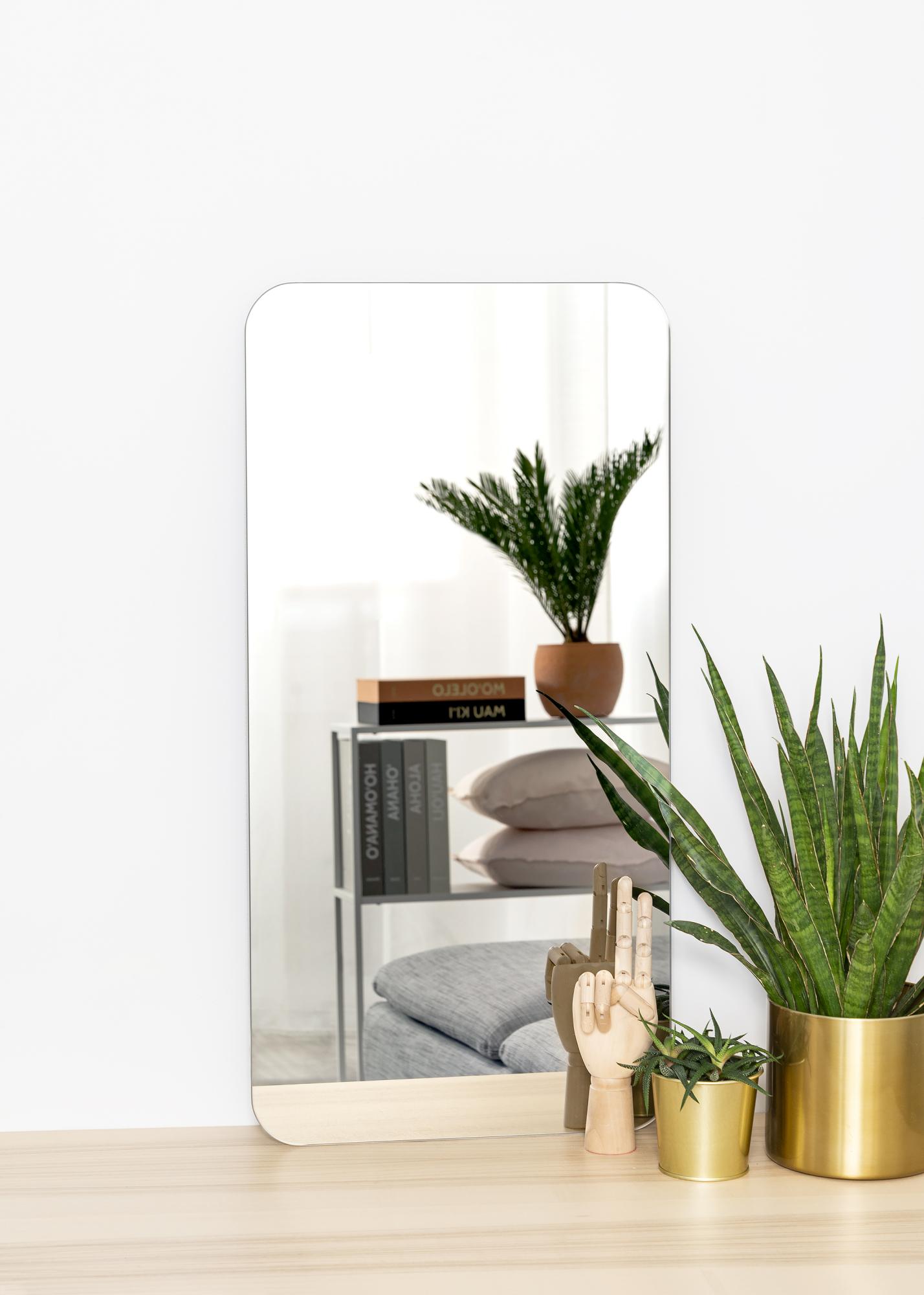 A rectangular mirror with an extra design touch: rounded corners that add a touch softness and elegance to the overall look. The mirror is also very thin and frameless which creates a minimalist feel.