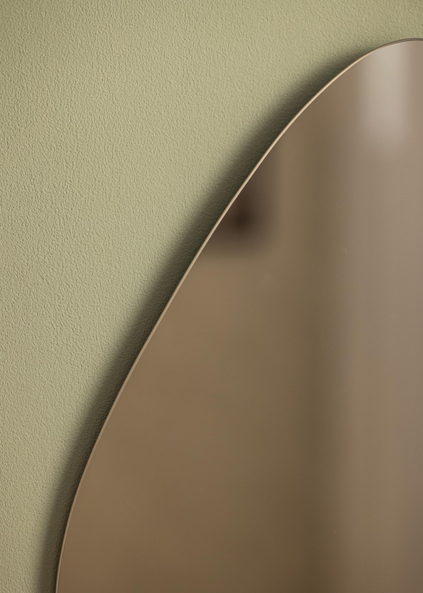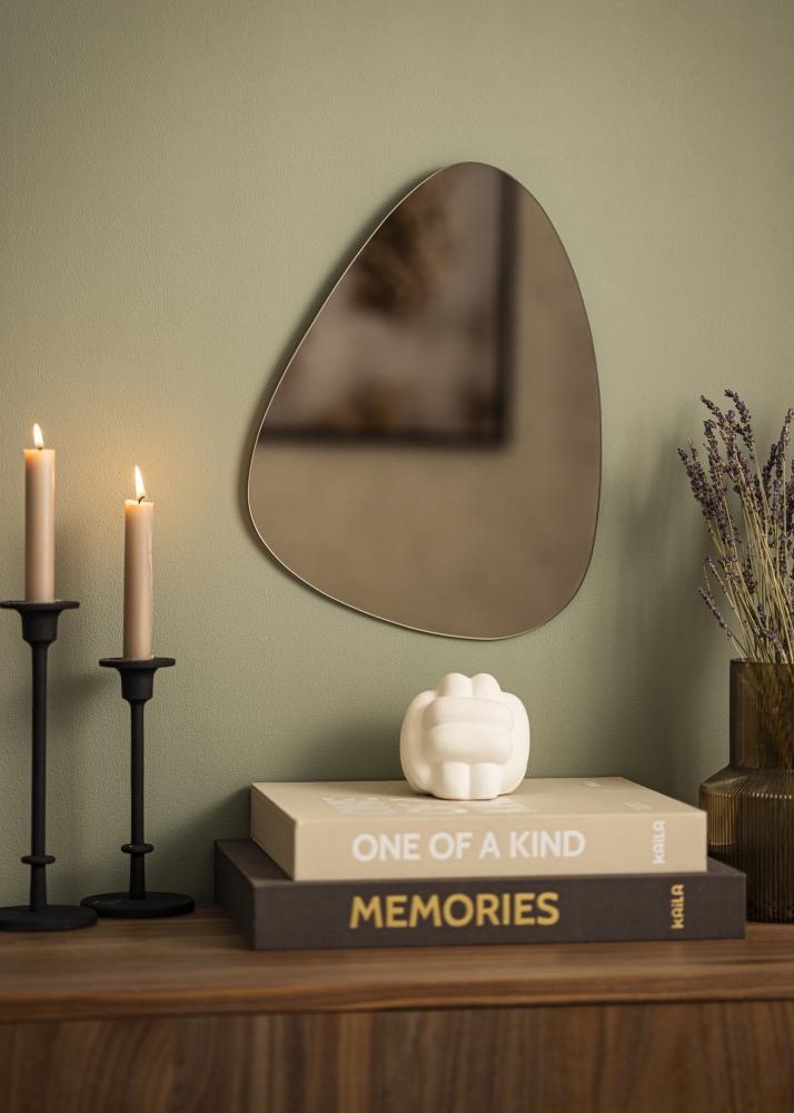 This asymmterical mirror can be a truly attractive and fashionable part of your decor! As well as its interesting egg-shaped design, this mirror also has stylish, bronze toned mirror glass, which heightens the modern appearance and harmonises beautifully with many different colour schemes. The mirror is very thin and has no frame, which gives it that extraordinarily elegant and slender feeling. Perfect as a functional and fashionable part of the wall in your living room, hall or bedroom.