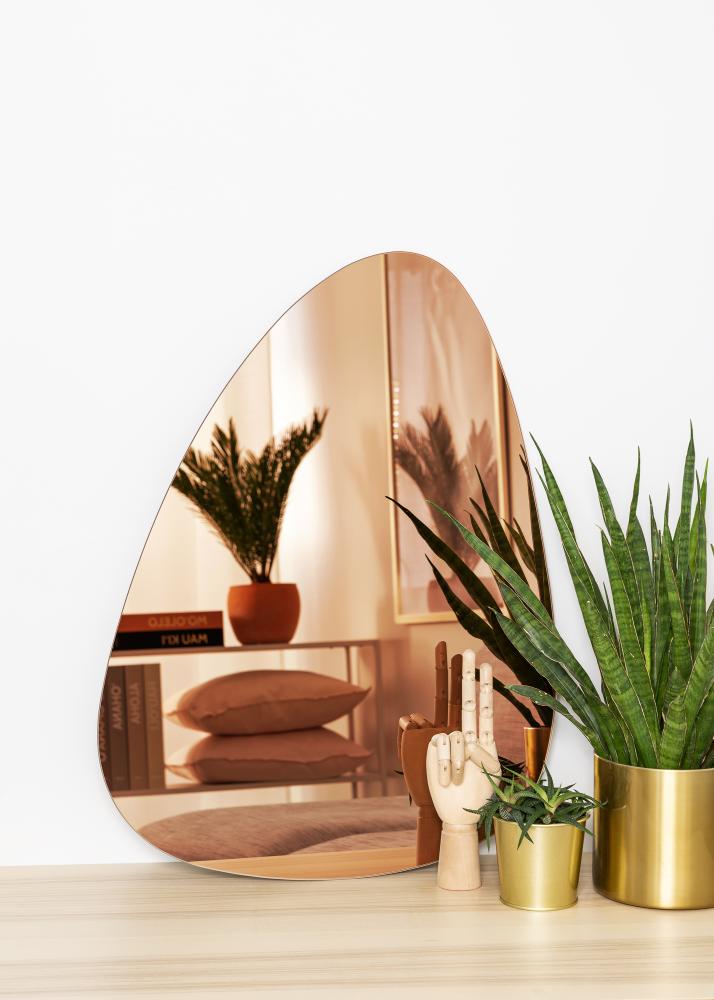 Trendy and elegant - a perfect description for this asymmetrical mirror. An unusually shaped mirror that adds life to any room! This mirror is very thin, which makes it feel stylish and modern. The mirror glass has been tinted in a beautiful shade of rose gold, which adds to the mirror's trendy feel.