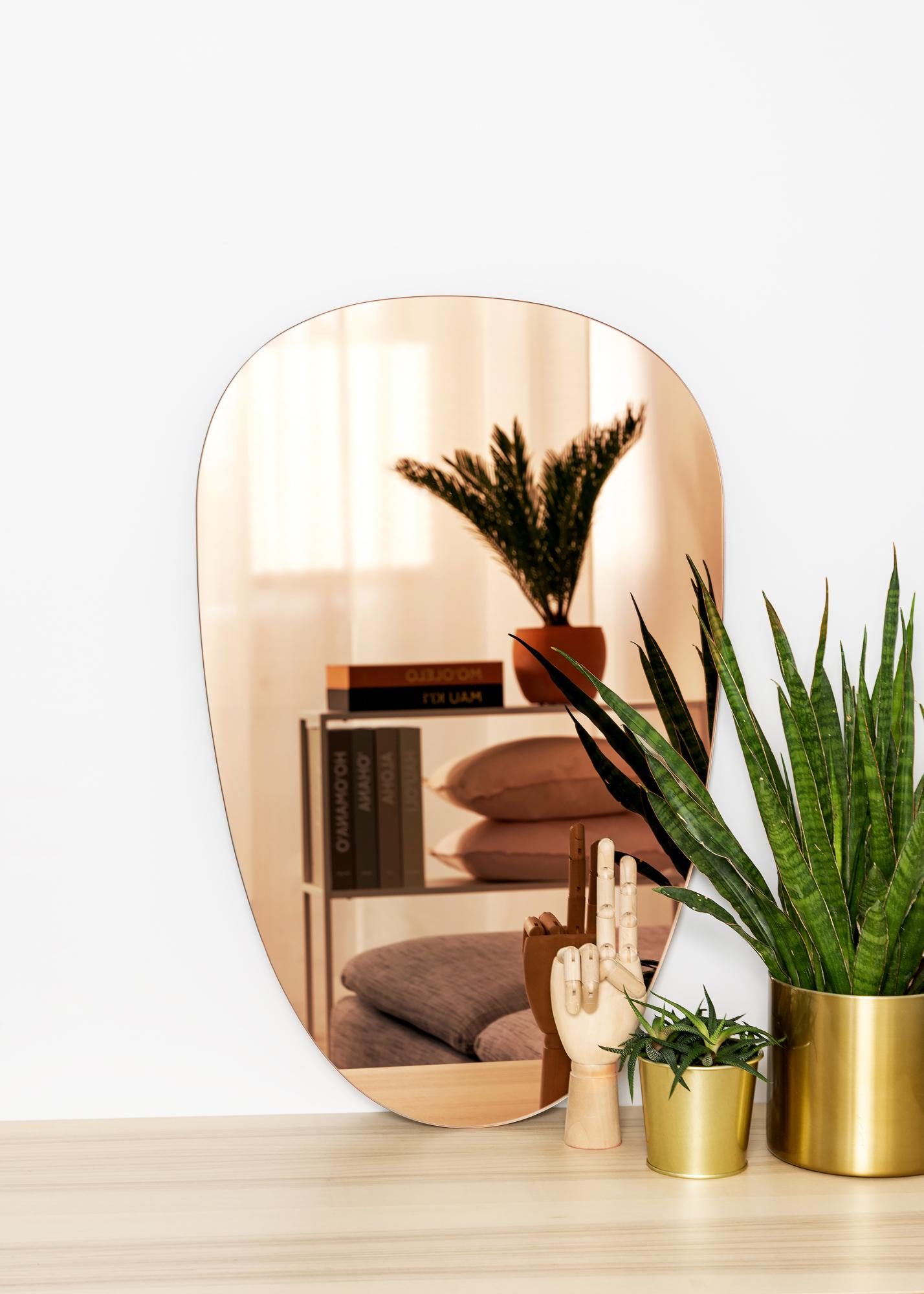 Add function and a touch of stylish Swedish design to your interior design! This soft and elegant mirror creates an inviting and light-hearted look in your home. The mirror is asymmetrically oval, very thin and has not been fitted with a frame, all of which adds to its slim and stylish appearance. The mirror features a rose gold-toned mirror glass, which adds a really trendy interior detail to your home.