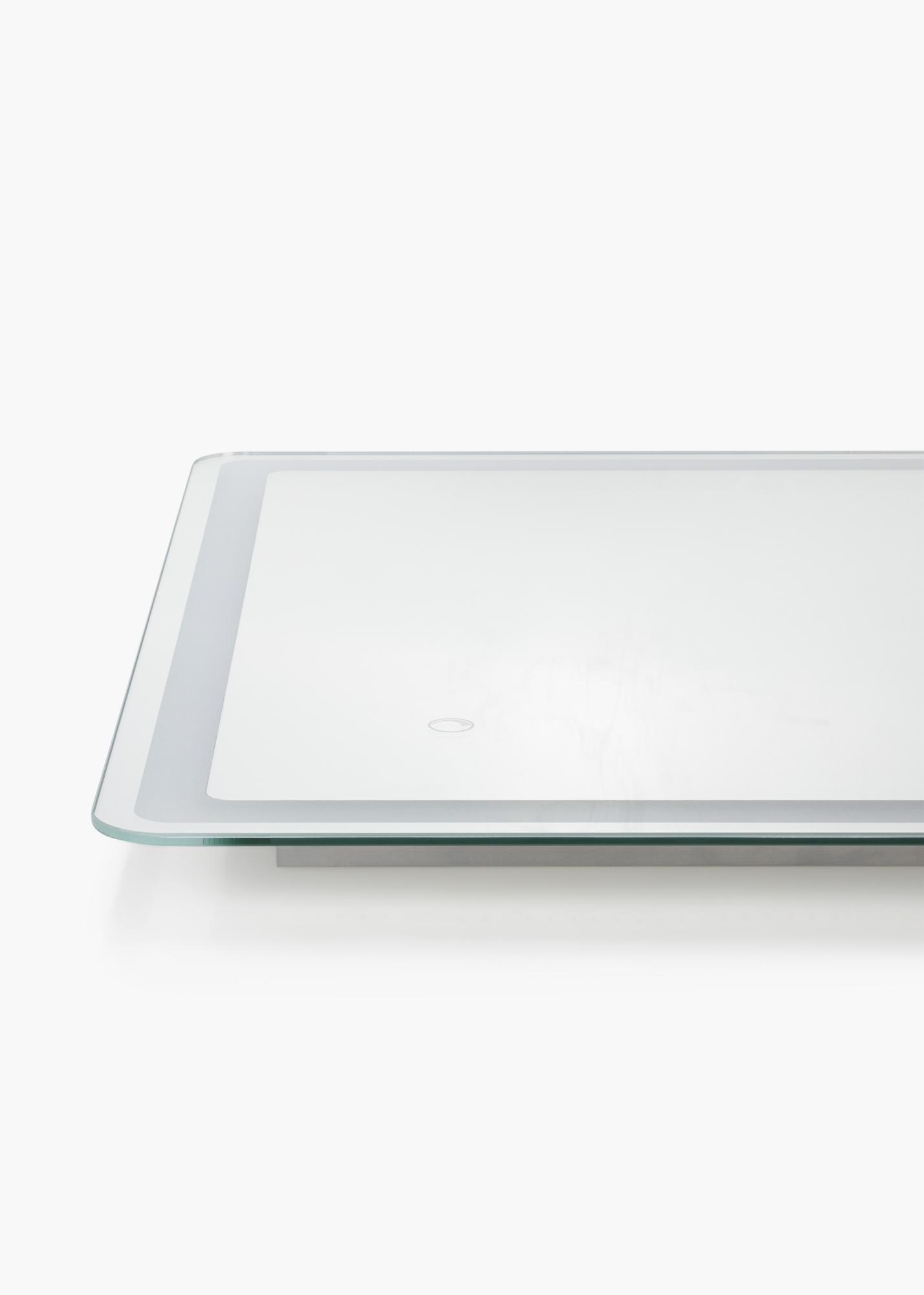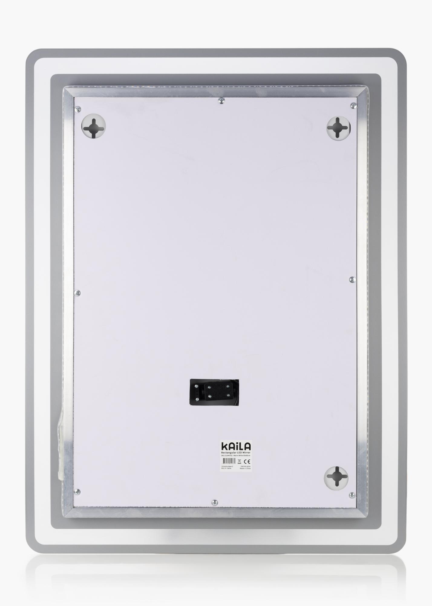 This is an elegant bathroom mirror from the Swedish brand KAILA. The mirror has softer edges, and on the front you’ll find integrated LED lighting which stylishly frames the mirror glass. The integrated LED lighting around the glass is dimmable, and gives a warm, white 3000K light. It can easily be adjusted through simply holding your finger on the button for a couple of seconds until the light has faded to the desired strength. This bathroom mirror retains the most recently programmed light settings for the next time you turn it on.
