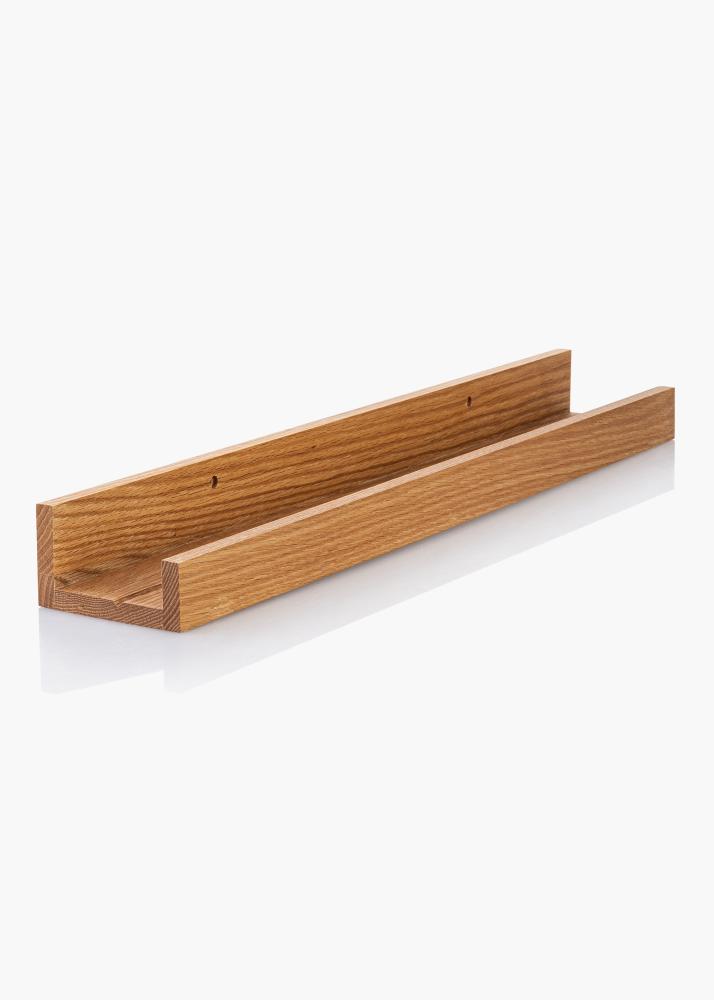With a practical picture shelf you can put your pictures on display in an elegant way, and also have a fantastic way to shake things up with your wall art. This picture shelf is made from solid oak and has stylish design with simple, straight lines. A groove has been cut into the shelf itself, giving support for your pictures and allowing them to stand at a attractive angle against the wall. The picture rail comes in several different lengths, and this specific model has a length of 100 cm. This product also has pre-drilled holes, and to make it even easier, all the right screws and plugs are included.