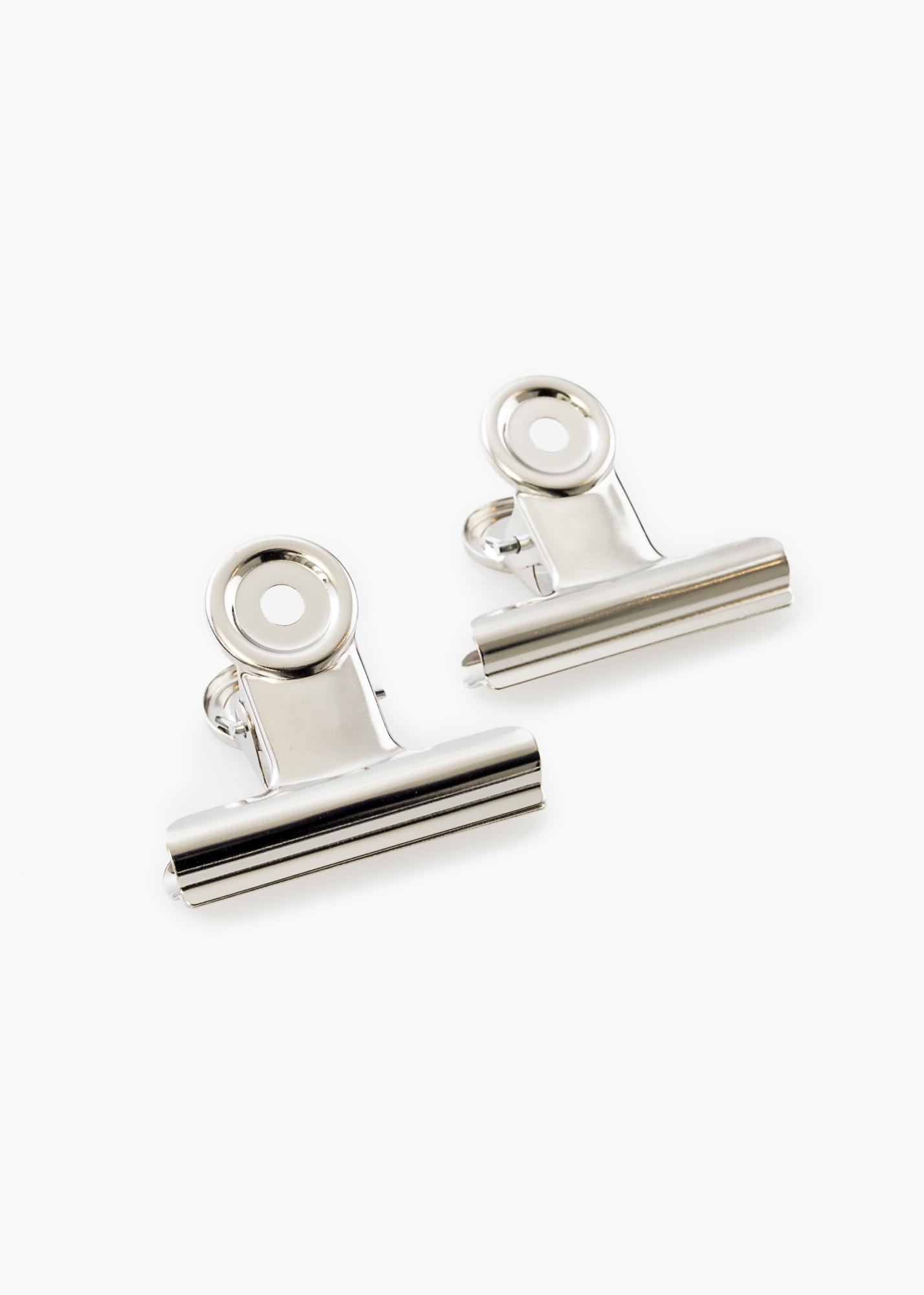 This metal clip has a modern and glossy silver finish, and is the perfect tool for hanging up your posters and prints in a trendy and minimalist way. The clip's flexible and strong grip means that you can hang up images of varying thickness - even the thinnest of paper. If you have a large poster, you just need to use two metal clips. The poster clip's design is pared-back and stylistically simple, and the holes in the round top of the clip make mounting on the wall easy and simple - all you need is a small nail or screw.