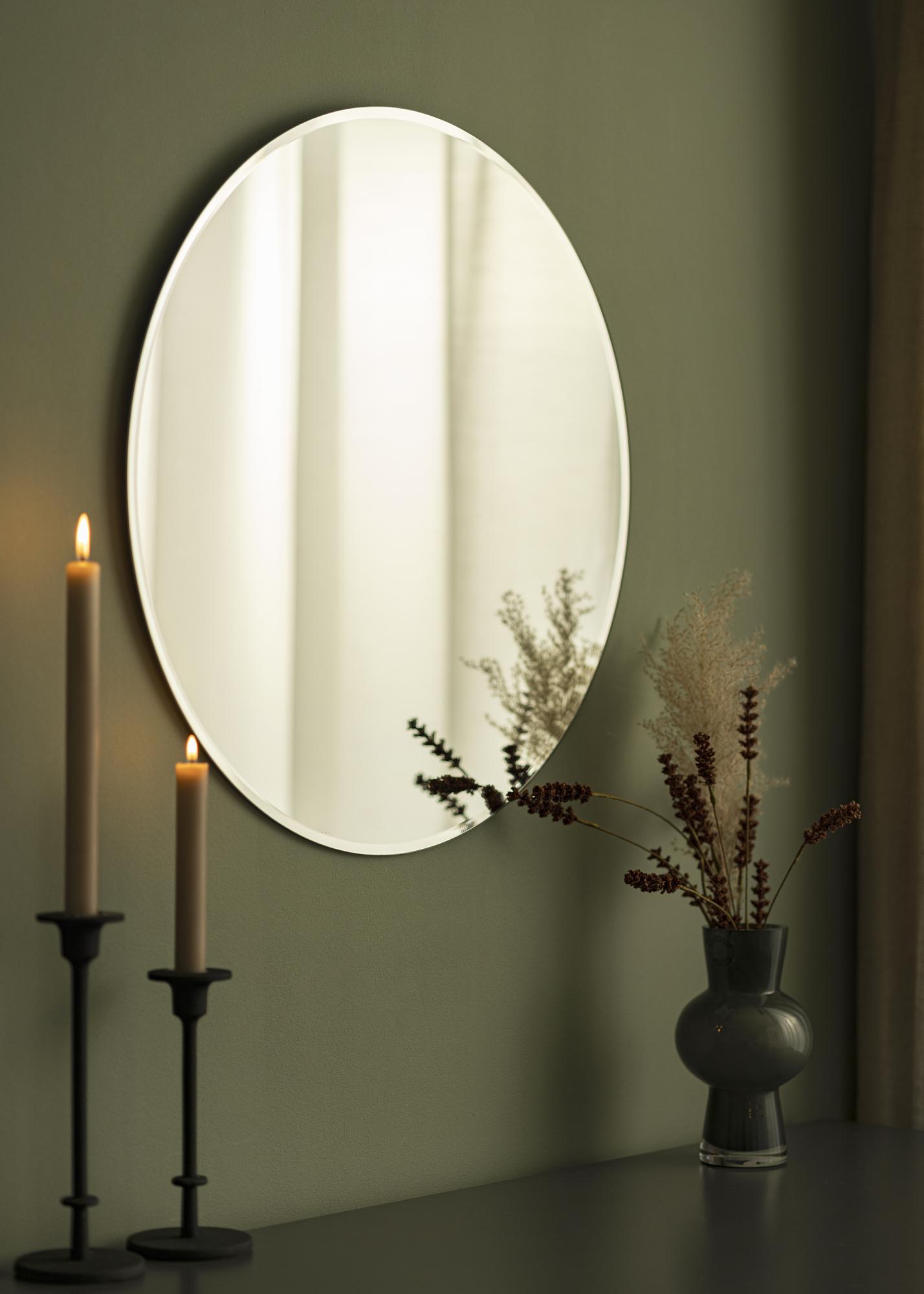 Create a soft and exclusive look in your home with this round mirror. Display the mirror where it will be useful and look great - for example in your living room, bedroom or hall.