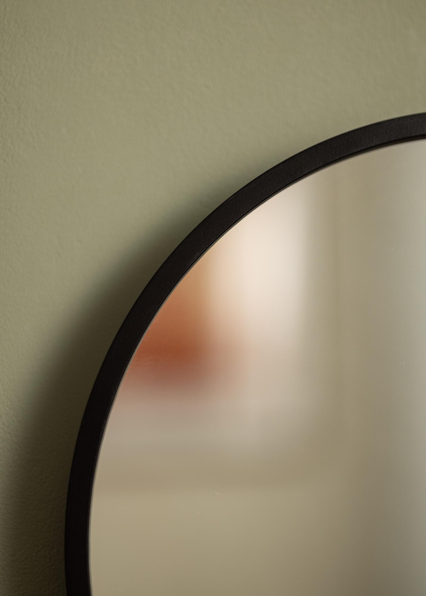 KAILA Round Mirror Edge Black is a round mirror with a thin, stylish metal frame in matte black that gives it a trendy, industrial appearance. The frame has a depth of between 30 and 40 mm depending on the size you choose, which means that it stands slightly off the wall, giving it a cool 3D effect. The depth of the frame also makes the mirror feel solid without affecting its minimalist appearance. A perfect round mirror to place in any room to which you want to bring function and stylish Swedish design!