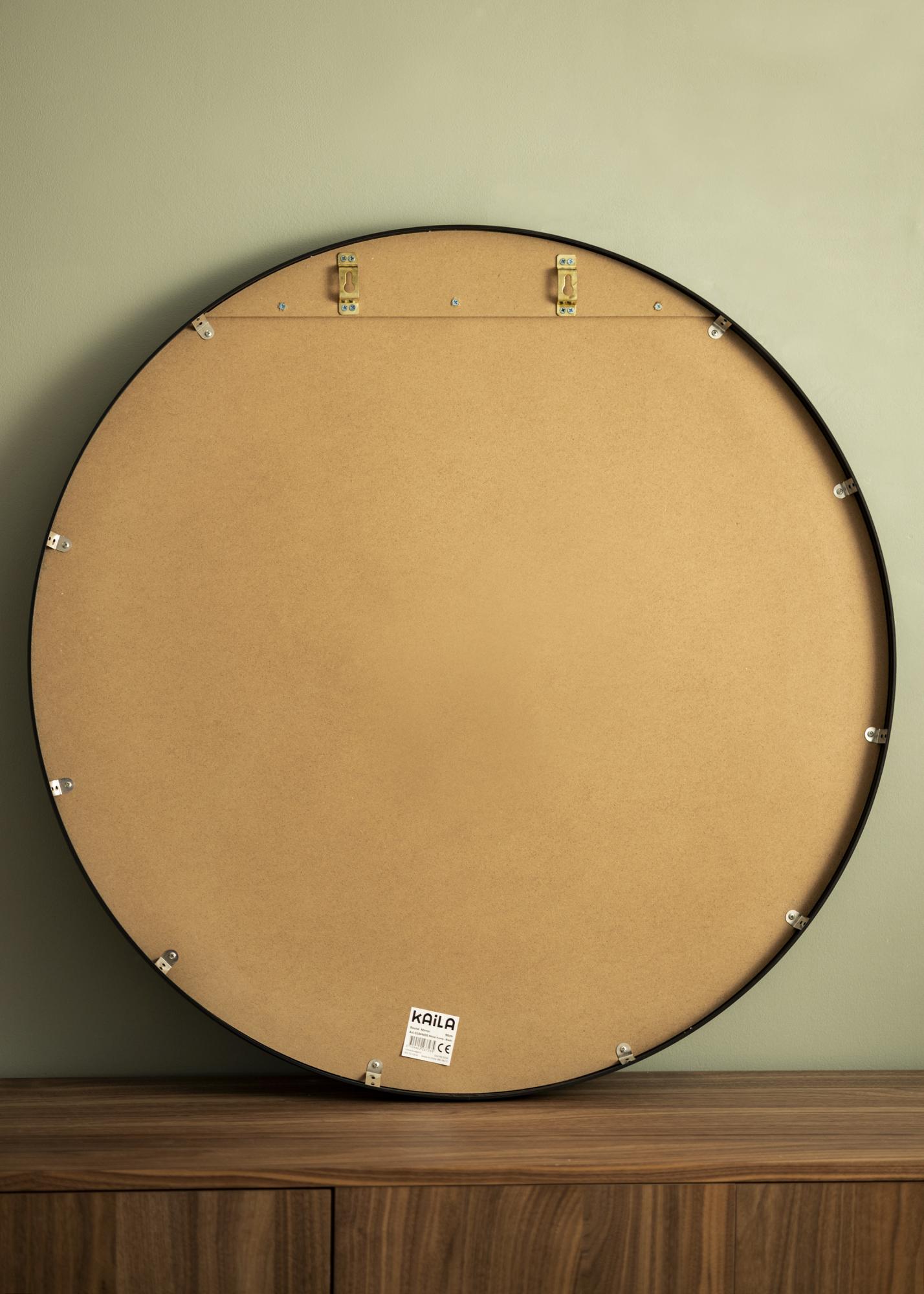 The mirror is available in several sizes, and this model has a diameter of 90 cm. On the back of the mirror are two pre-assembled wall mounts for easy and stable hanging on your wall. Matching screws and wall plugs are included.