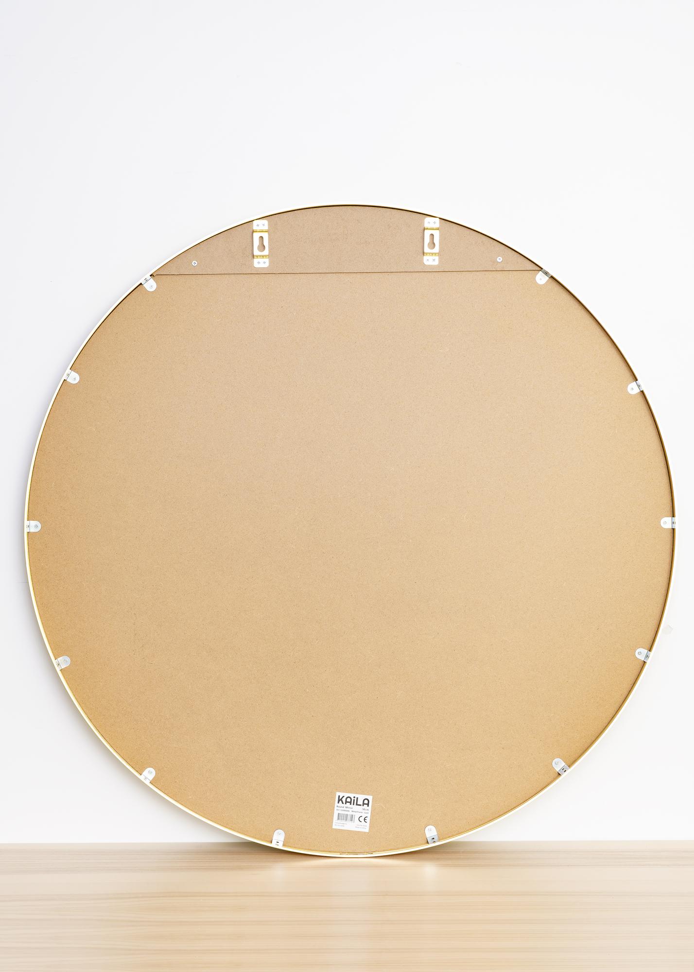 KAILA Round Mirror Edge Gold is available in several sizes, and this model has a diameter of 110 cm. On the back of the mirror are two pre-assembled wall mounts for easy and stable hanging on your wall. Matching screws and wall plugs are included.