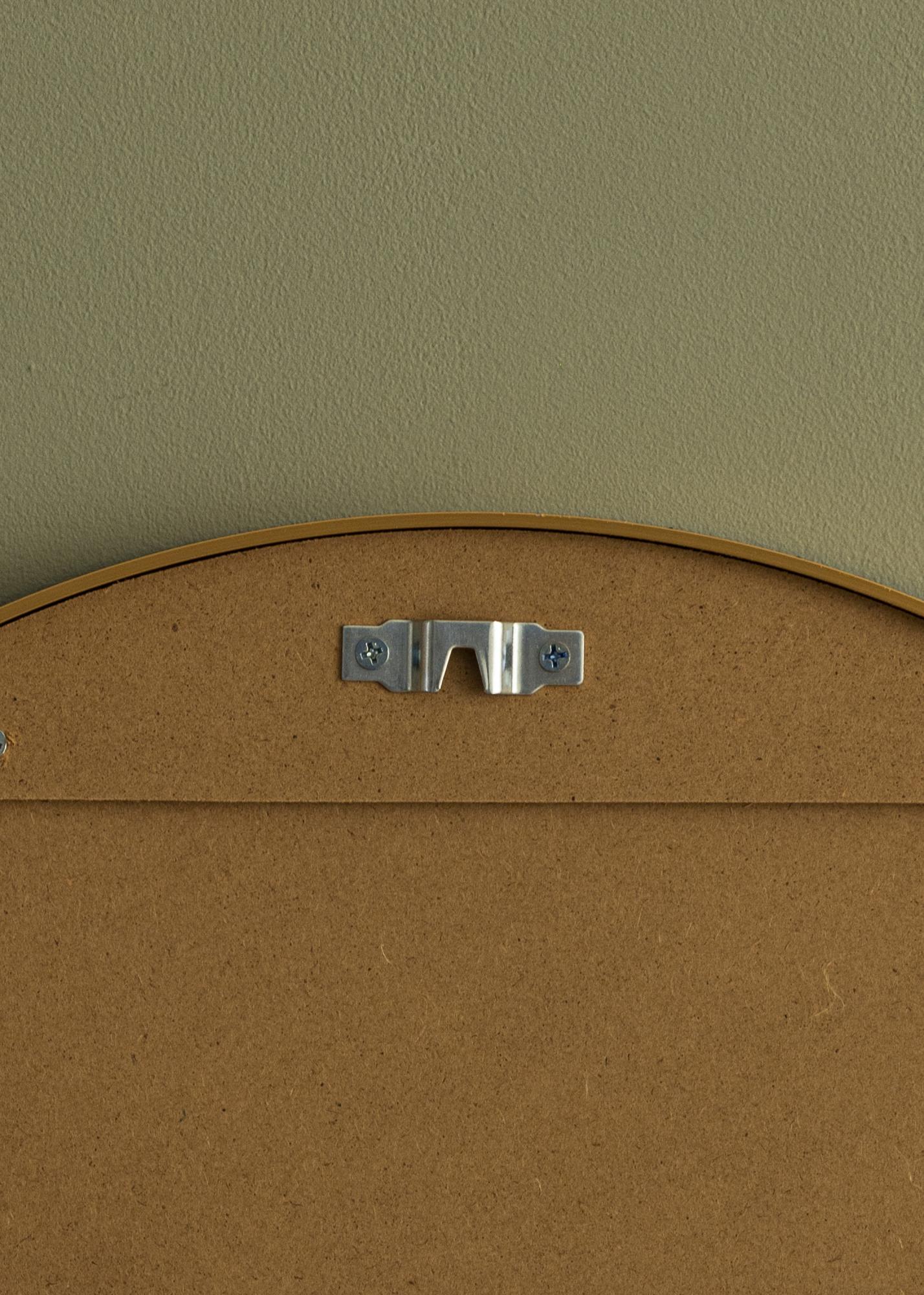 KAILA Round Mirror Edge Gold is available in several sizes, and this model has a diameter of 50 cm. On the back of the mirror are two pre-assembled wall mounts for easy and stable hanging on your wall. Matching screws and wall plugs are included.