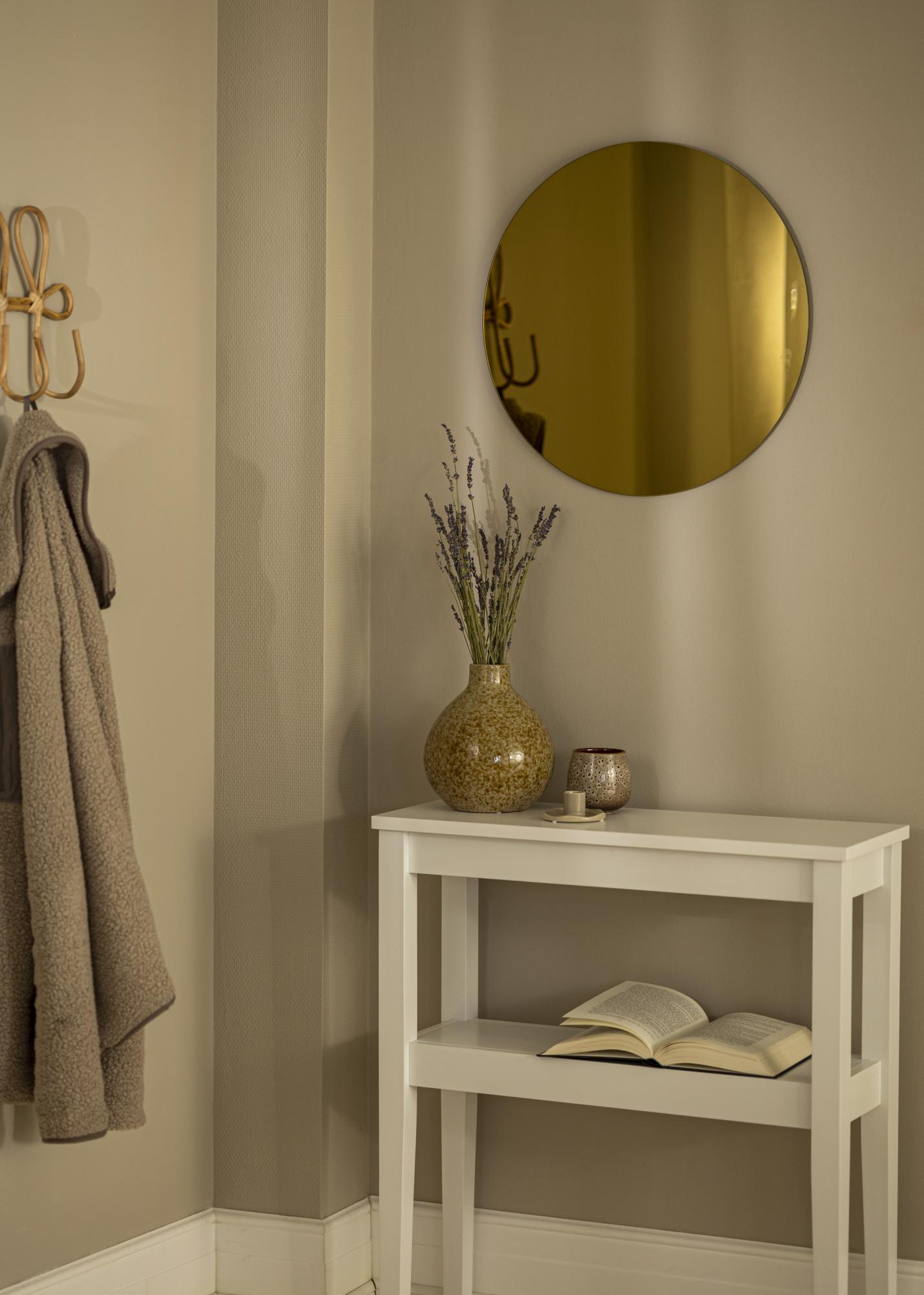 Round mirror with an elegant golden tint