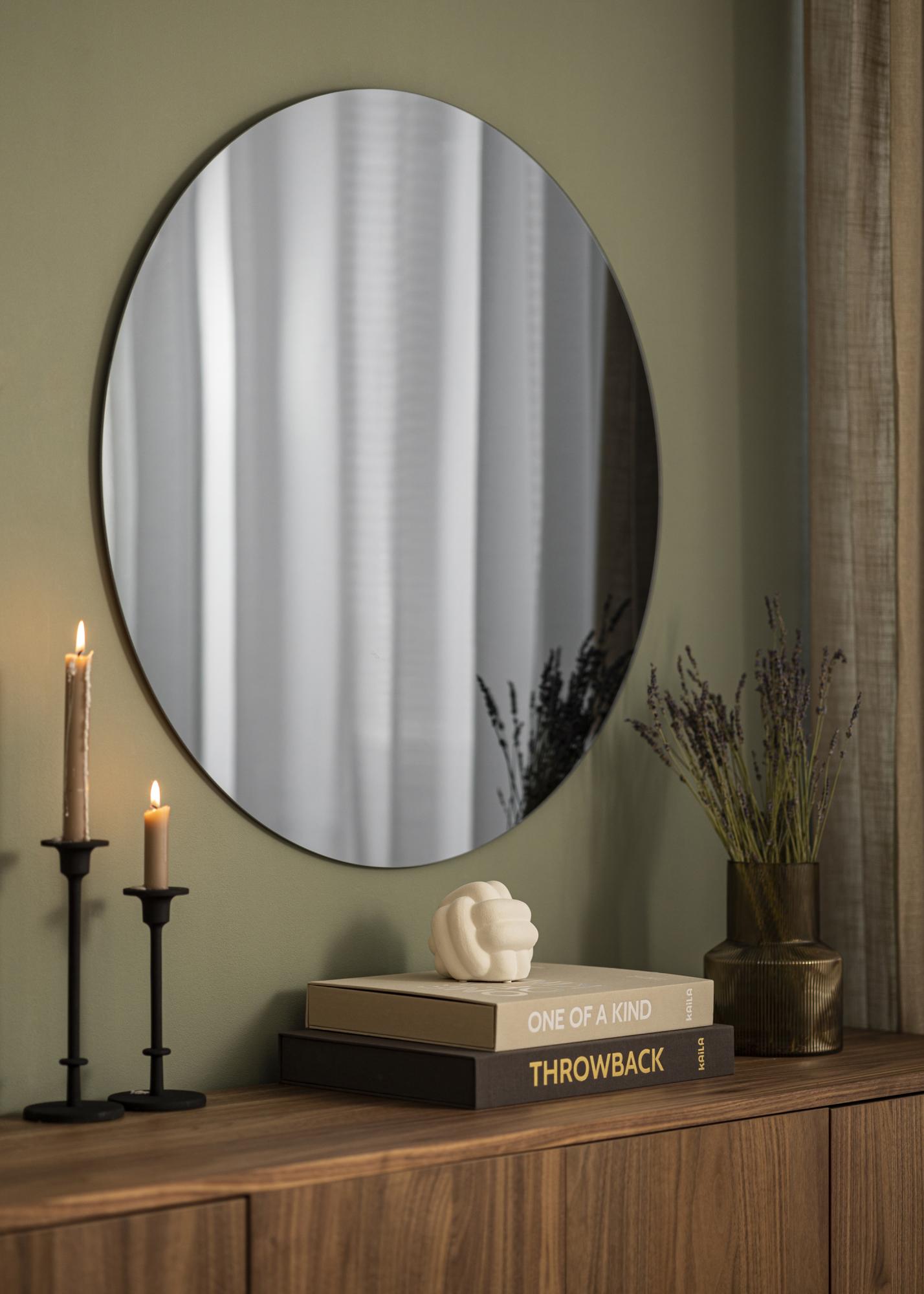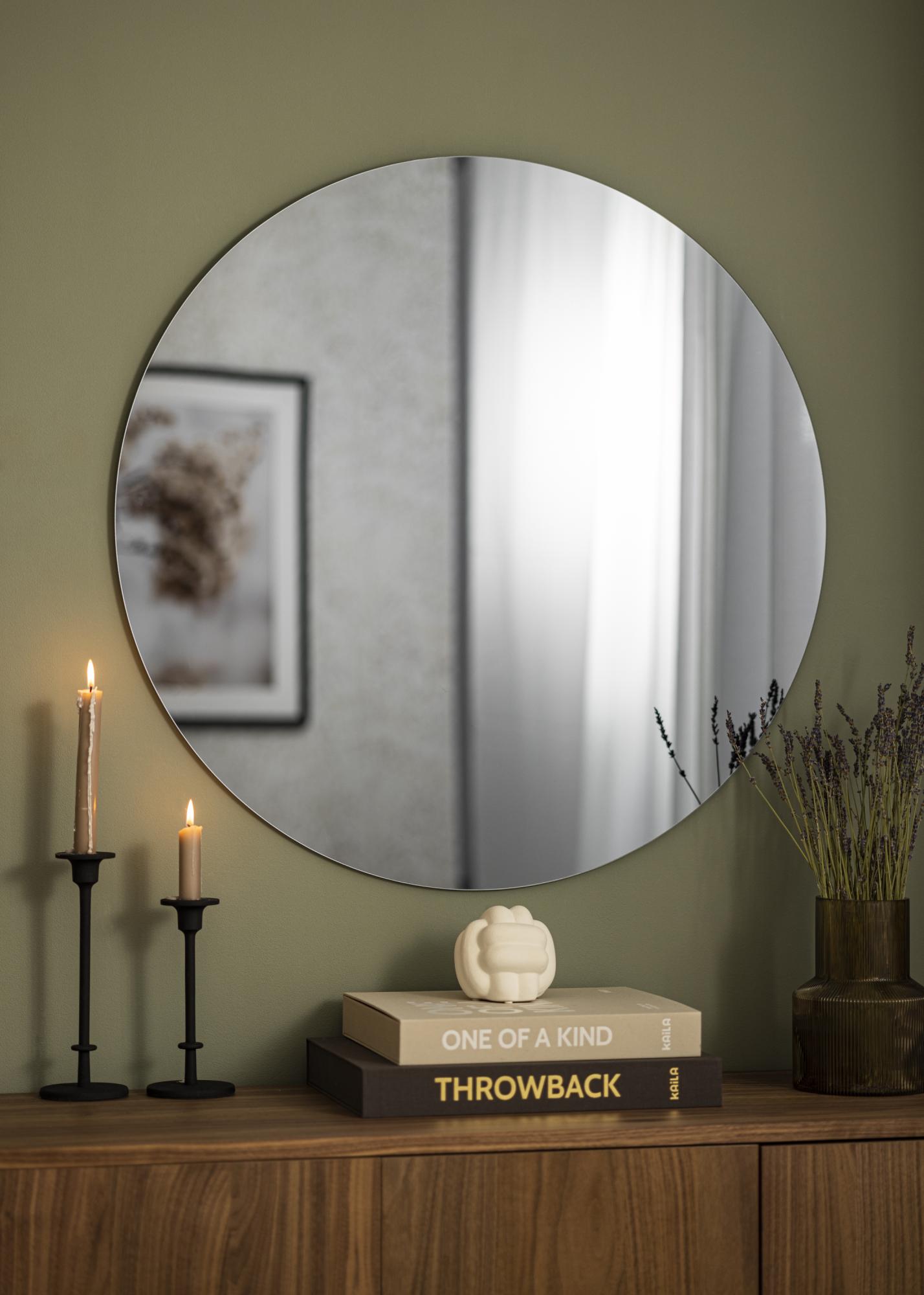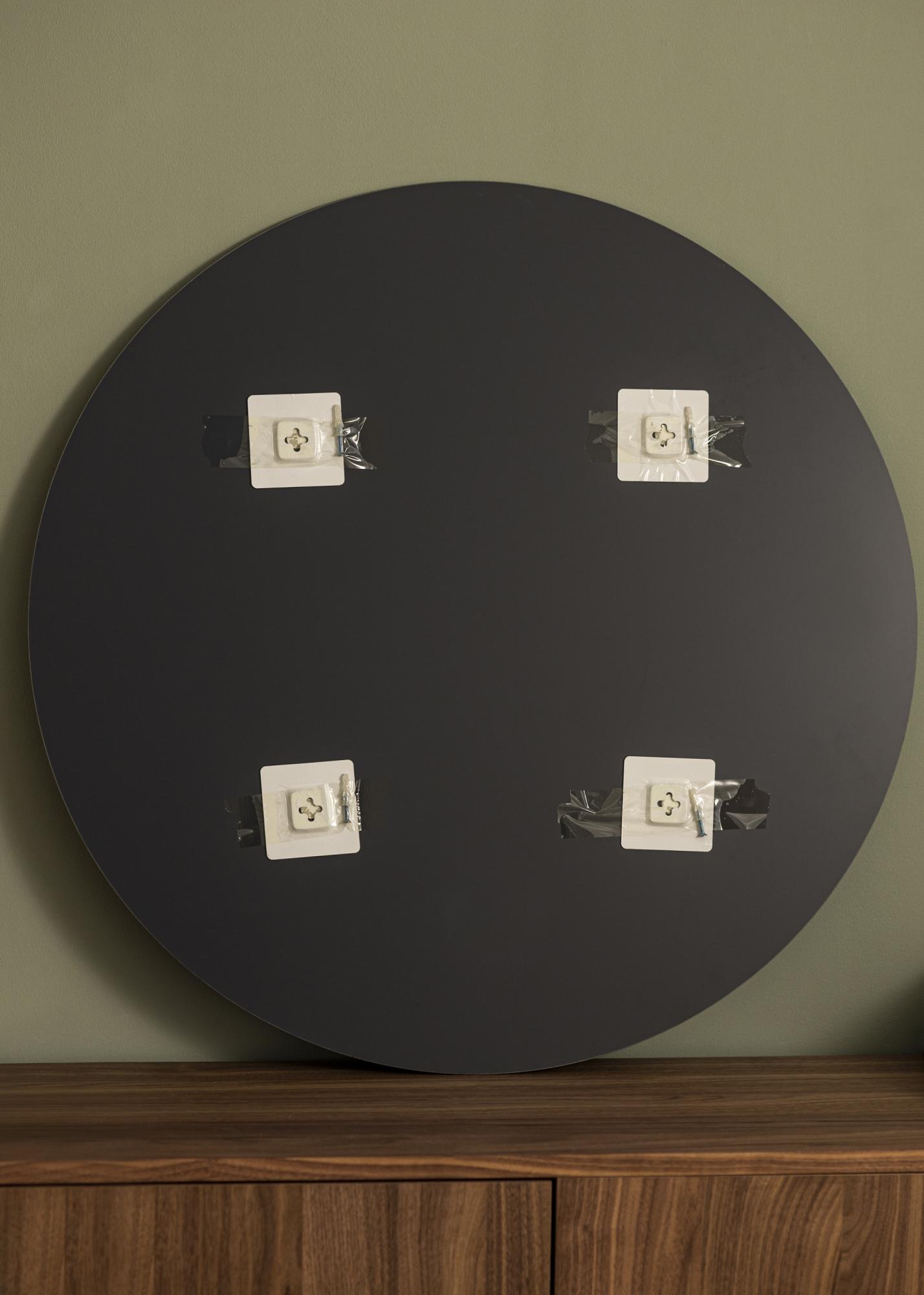 A round mirror with a stylish grey-toned mirror glass that adds a trendy interior detail in your home! This mirror is very thin and is made in minimalist design without a frame. This creates an elegant and super modern look.
