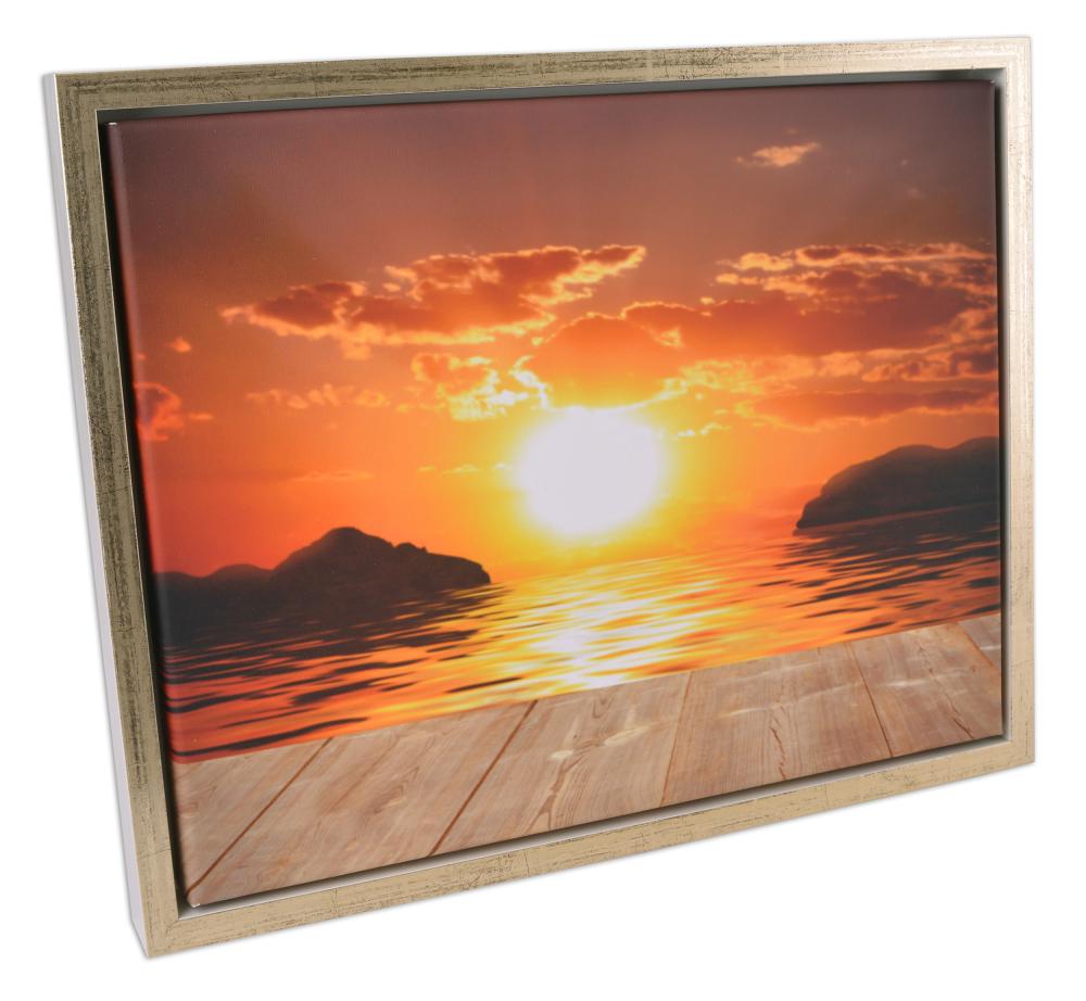 Kungsgården is a floating picture frame that is excellent for objects such as canvas paintings, with a depth of 30-40 mm. With its stylish white and gold-coloured profile, Kungsgården gives a wonderful feeling to your finest canvas paintings.
