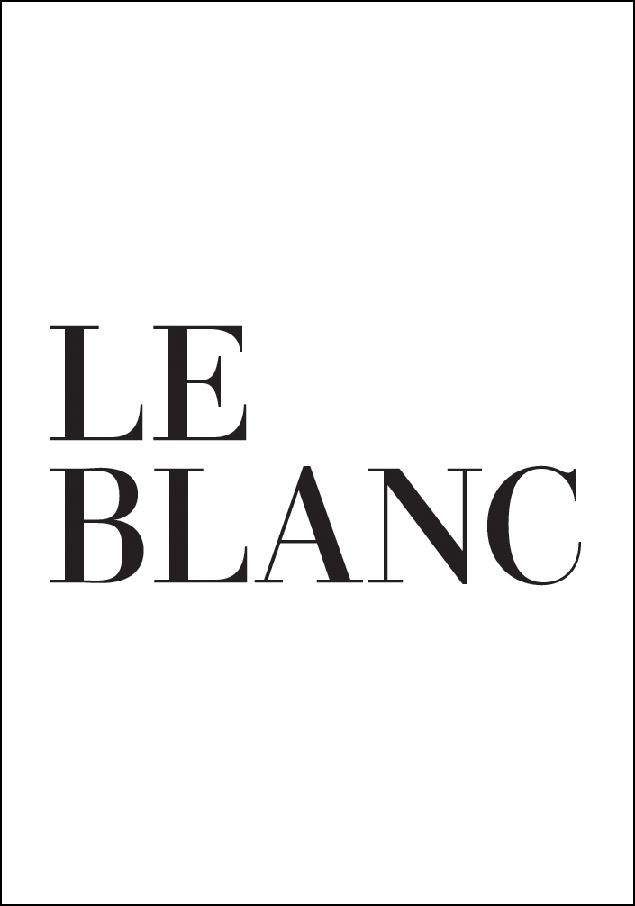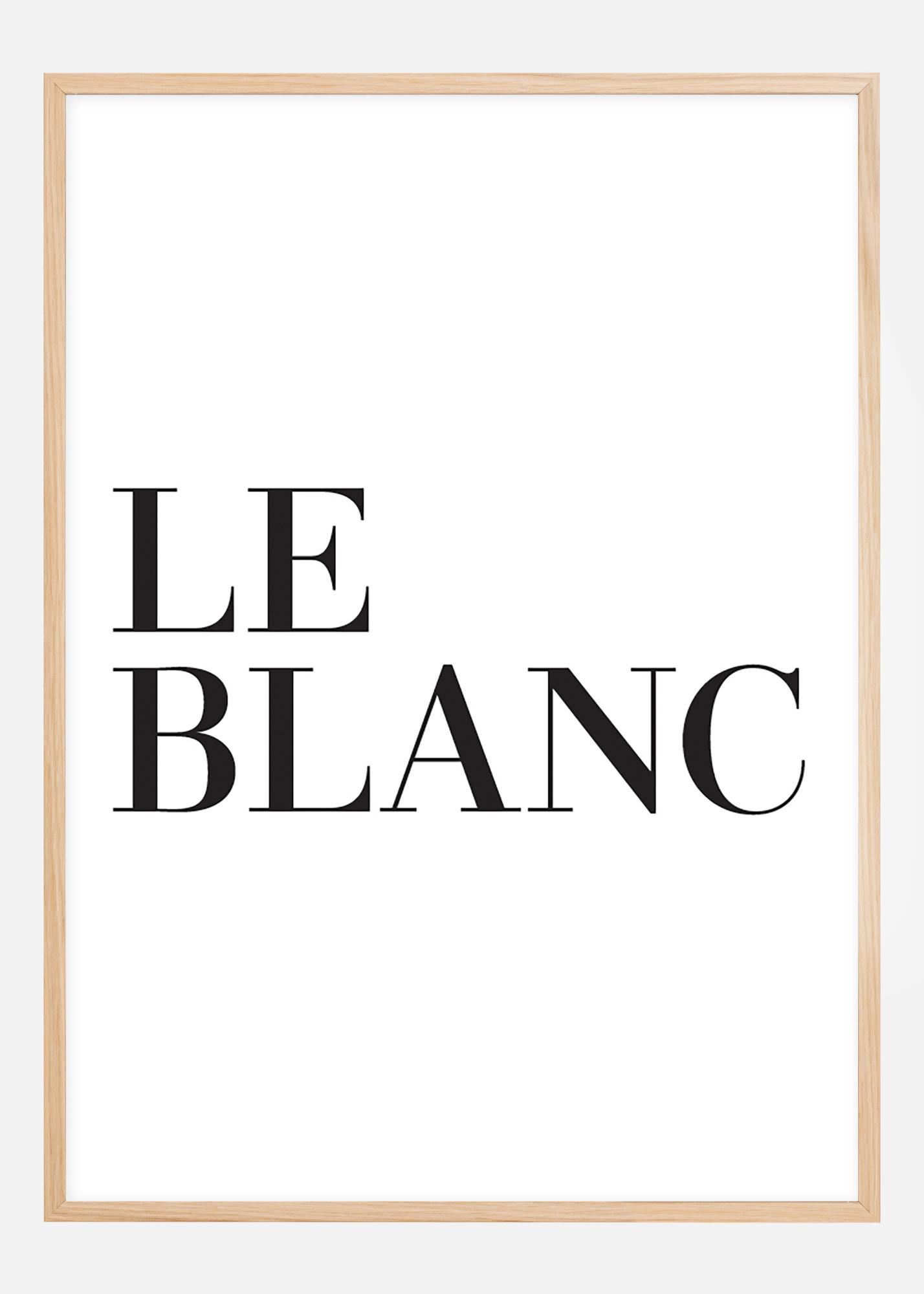 A simple and sleek text poster with the message "Le blanc", The white. A poster that fits perfectly in the modern and minimalist home and is perfect to have as part of a larger collage.
