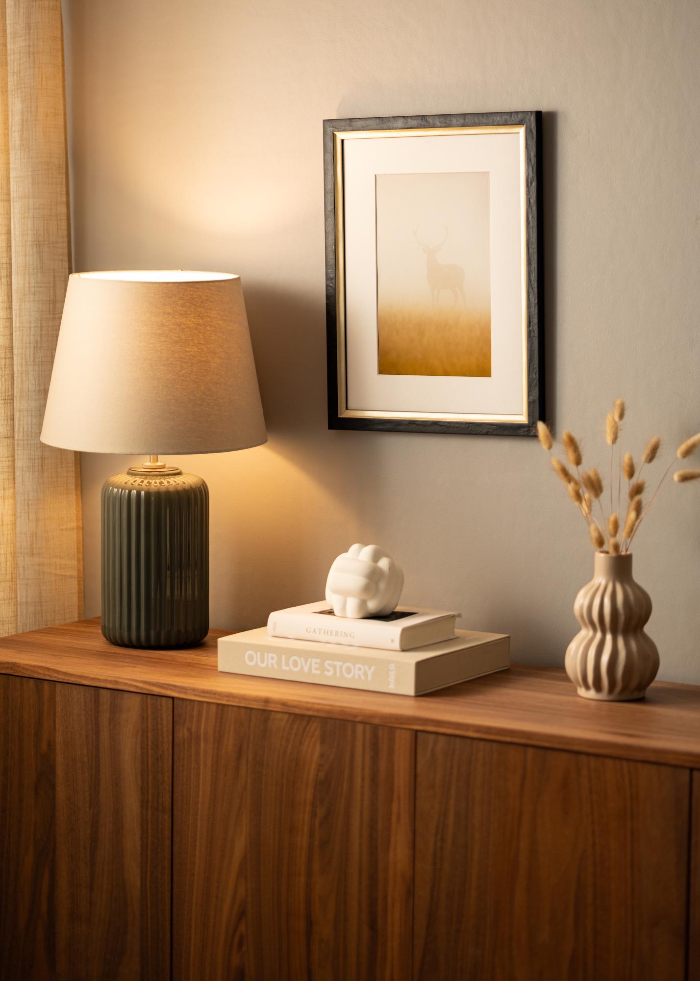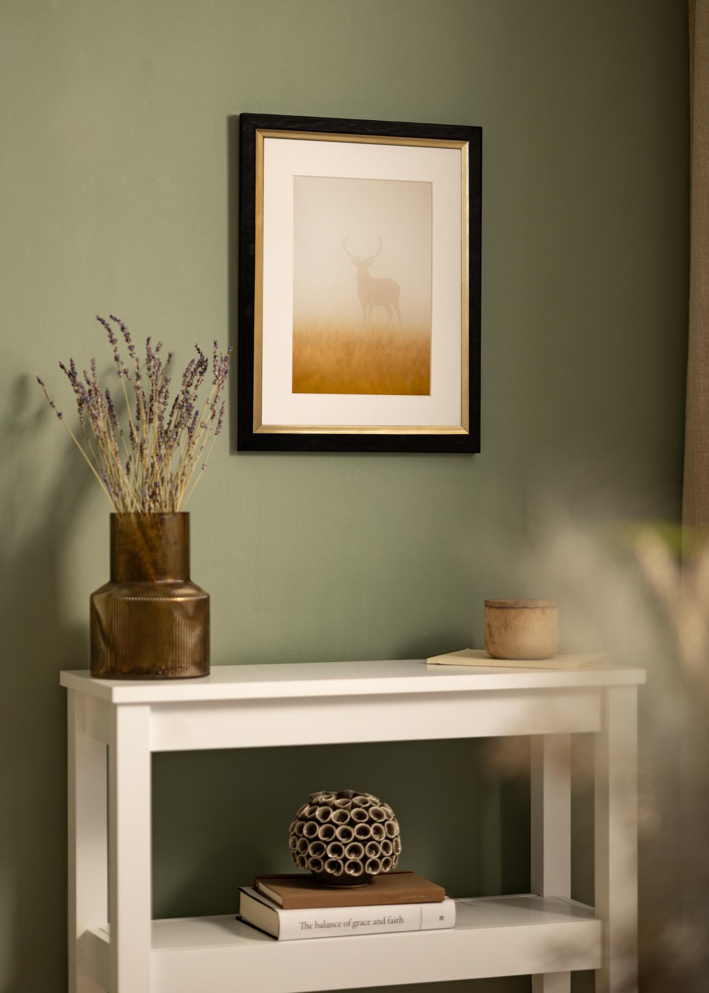 "Leonie" is a wide frame made in Italy, which guarantees high quality and stylish design. The picture frame has an elegant profile in black, and a clearly-structured surface, with a wide silver edge next to the image.