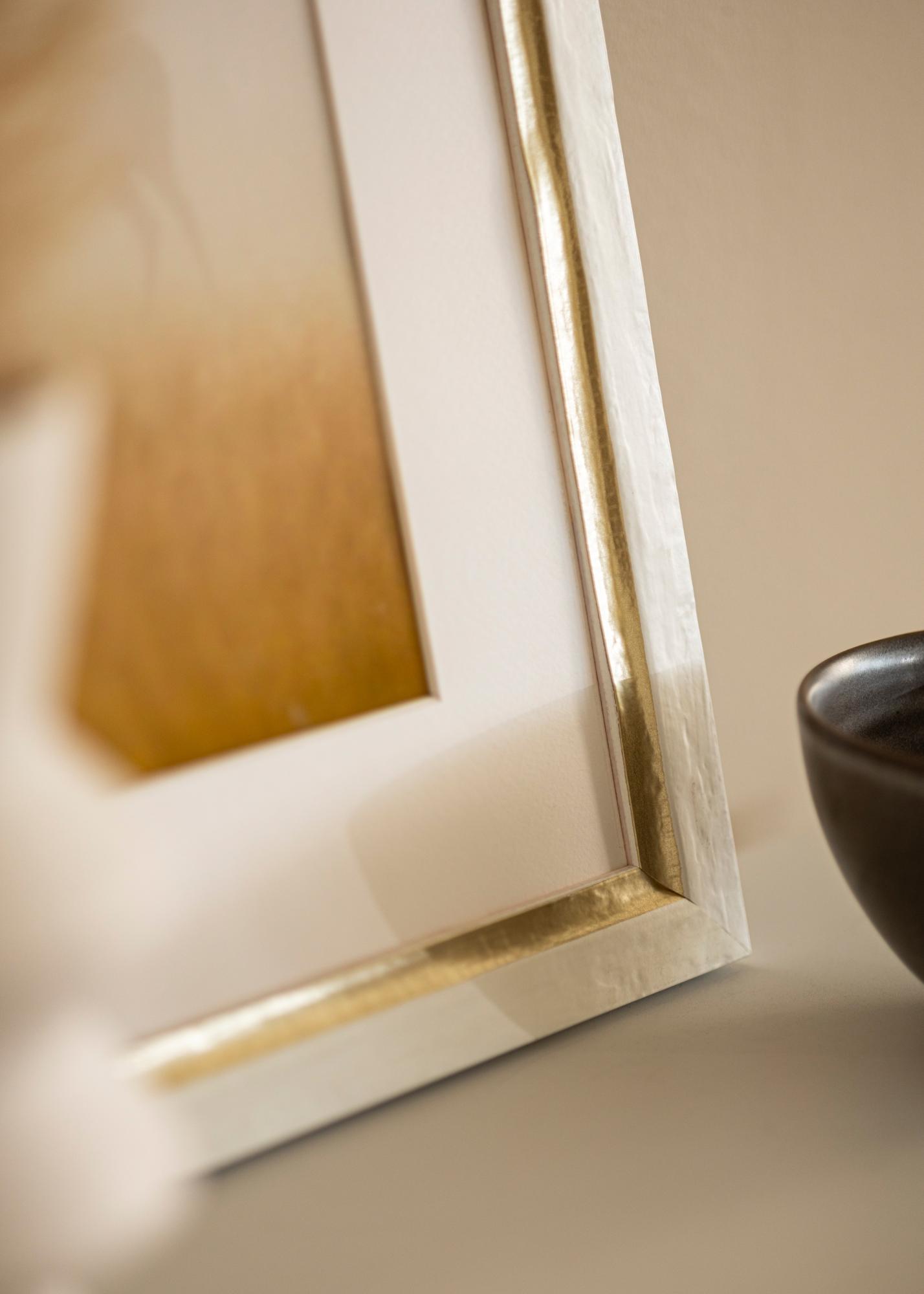 "Leonie" is a wide frame made in Italy, which guarantees high quality and stylish design. The picture frame has an elegant profile in white and a clearly-structured surface, with a wide silver edge next to the image.