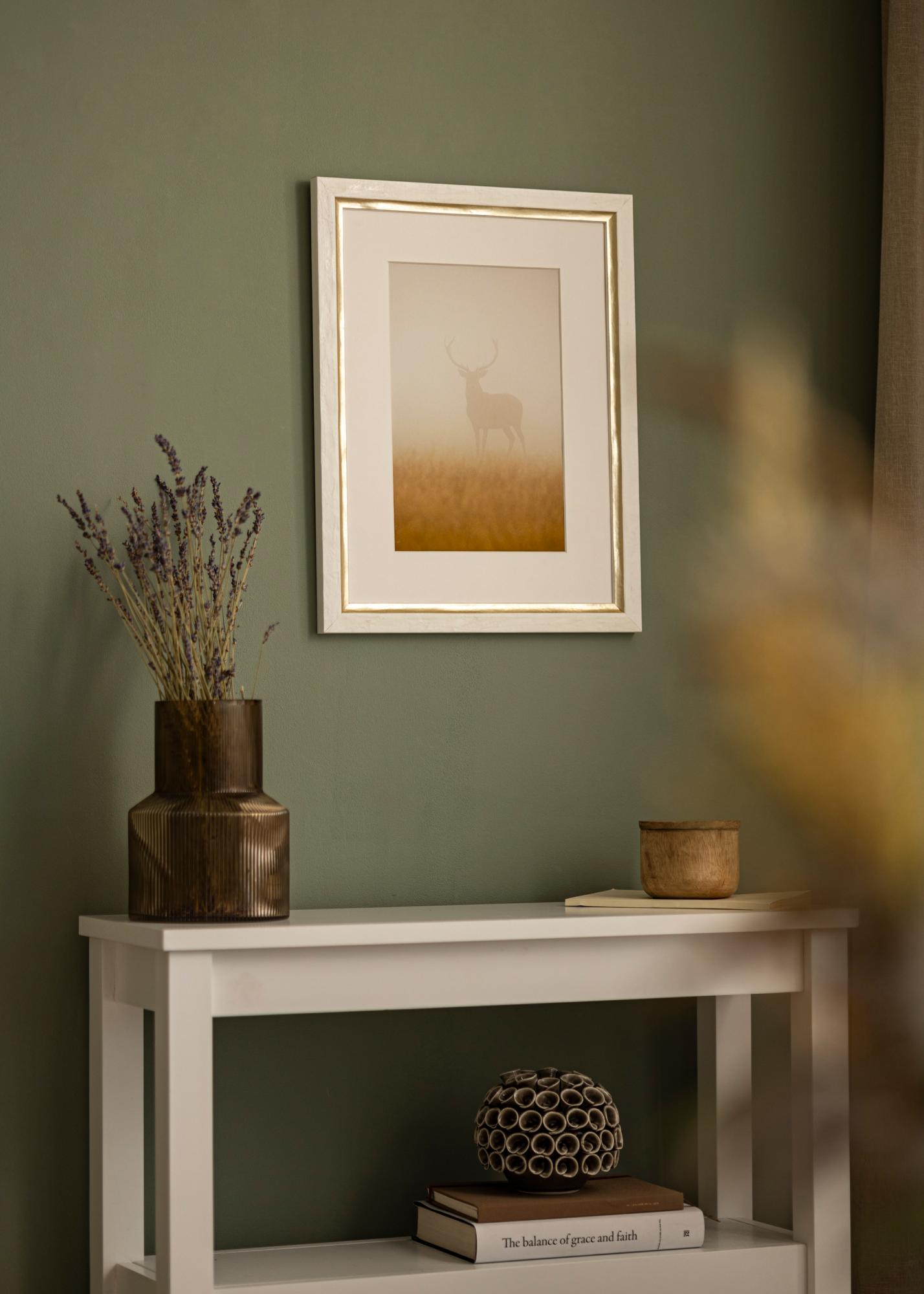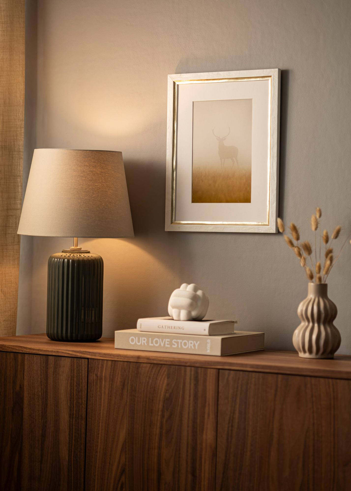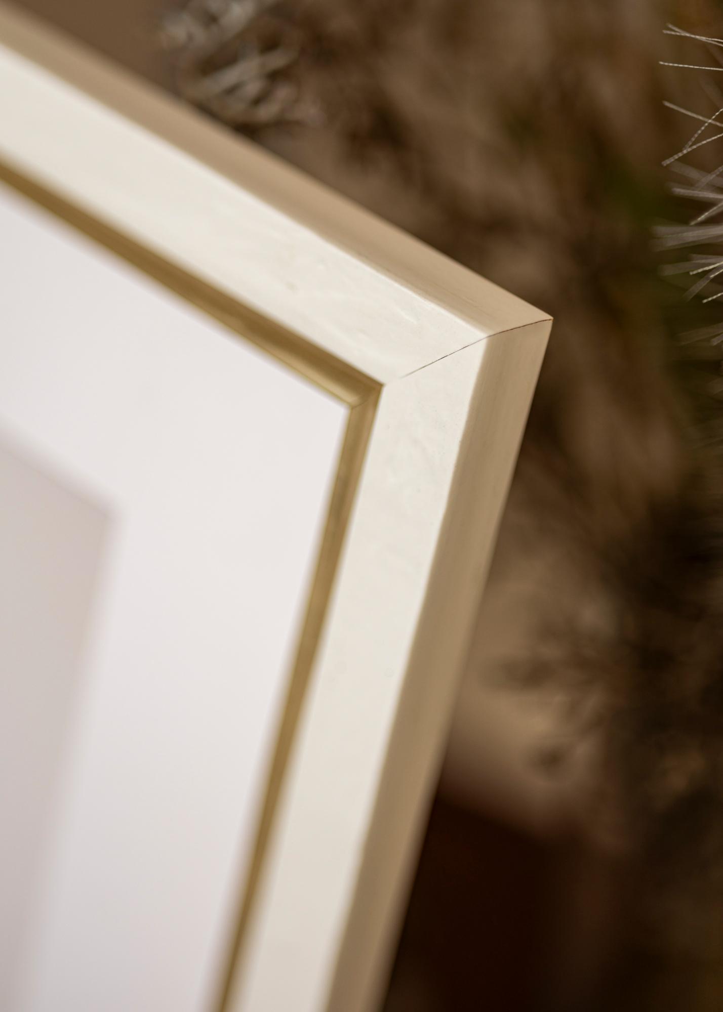 "Leonie" is a wide frame made in Italy, which guarantees high quality and stylish design. The picture frame has an elegant profile in white and a clearly-structured surface, with a wide silver edge next to the image.