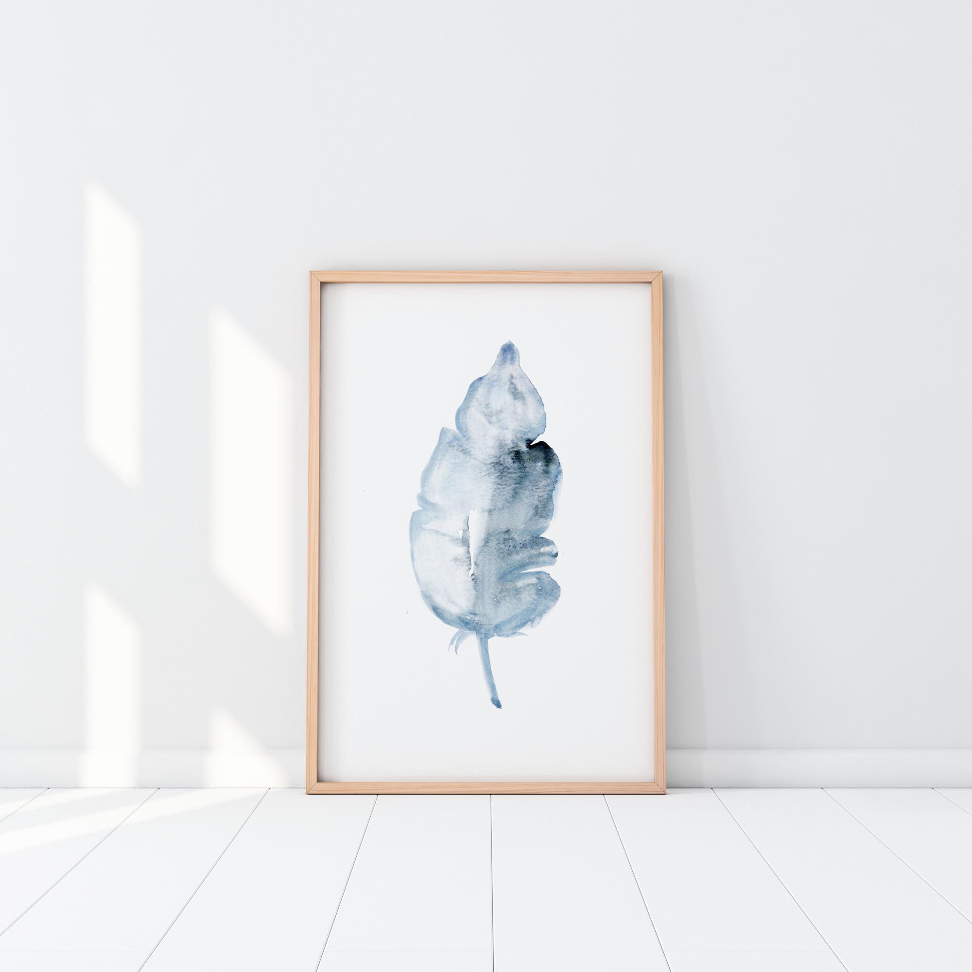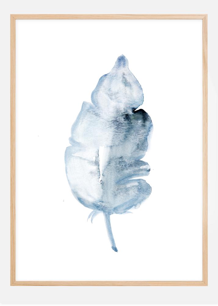 A beautiful close-up picture of a big pale blue feather. Set on a white background the light reflects on the left side of the feather creating an almost transparent look. A minimalistic print that is perfect in any environment.