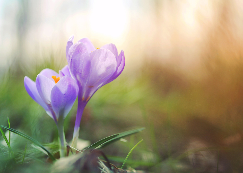 A charming picture of perhaps spring's most colourful sun worshipper, the crocus. The blurred background in a complementary colour lifts the flowers and brings harmony to the photograph. Suitable for those who want joy of colour in their home and it's always nice to use a shade from the painting as an accent colour in the rest of the decor. Feel free to combine with other plant motifs to create a cohesive feel in the room.