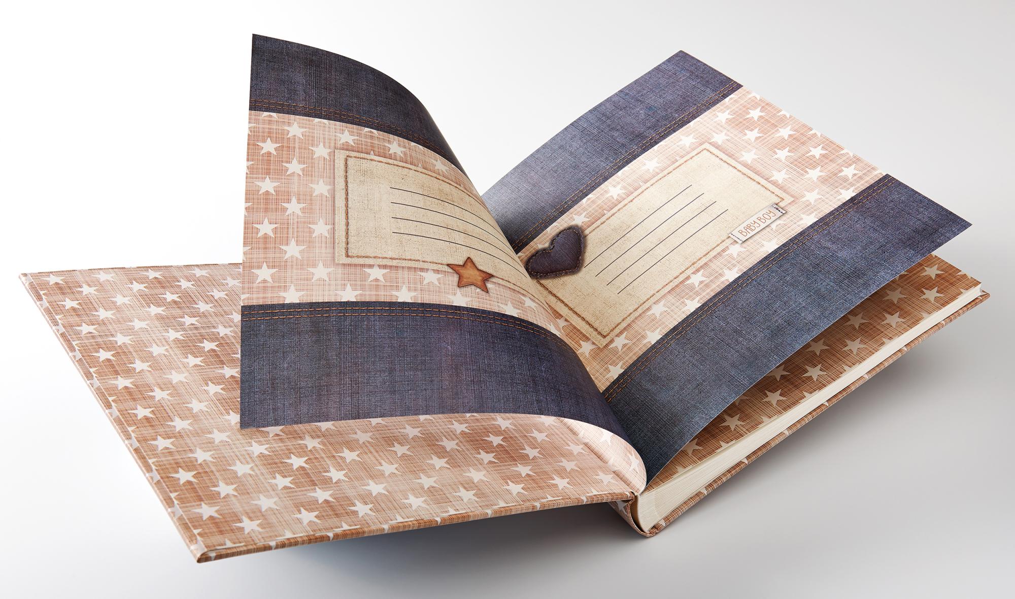 Baby album with the words "Little baby Boy" on the front of the album. The front of the album is also decorated with lots of little stars that give the album an inviting and comfortable feeling.