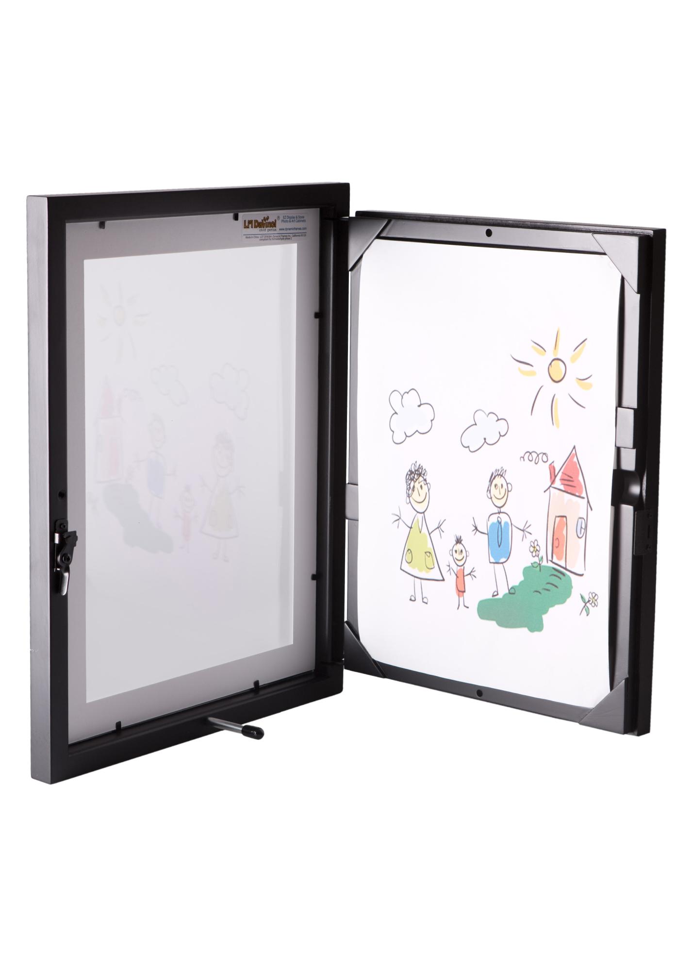 Basic and flexible drawing frame in A4 size. Perfect for all children's drawings. Simply replace the drawings in the frame as new works of art are created. The frame opens easily from the side. Da Vinci drawing frame is a black, stylish frame and fits anywhere in your home. It carefully takes care of the children's drawings so that they are stored safely. Why not let your children take pride in having their pictures framed and posted on the wall in their room? A perfect gift for a birthday or Christmas, which would be appreciated by both young and old. Place drawings, photographs or diplomas in a practical, simple frame, to become part of the interior decor.