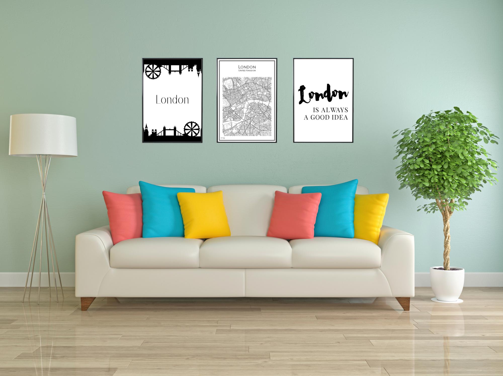 The poster for those obsessed with London and who eagerly take off for a weekend getaway whenever an opportunity arises. The graphic print looks stylish when hung together with other London motifs, such as maps and photographs, on a theme wall that becomes a focal point in the room. The poster works well in a black or white slim frame that allows the motif to speak, and the sleek picture fits nicely into all types of interior styles and environments.