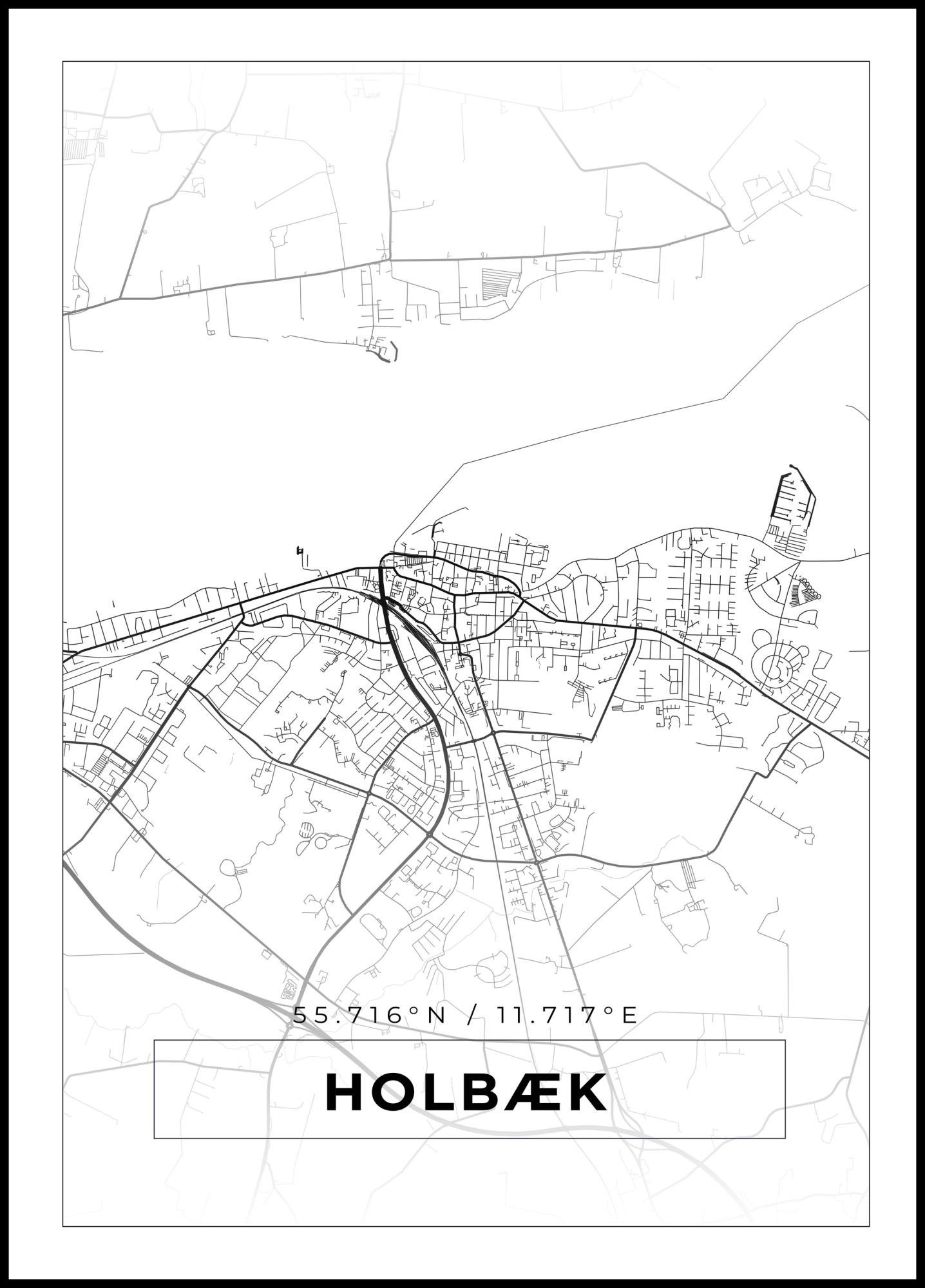 Map - Holbæk - White Poster