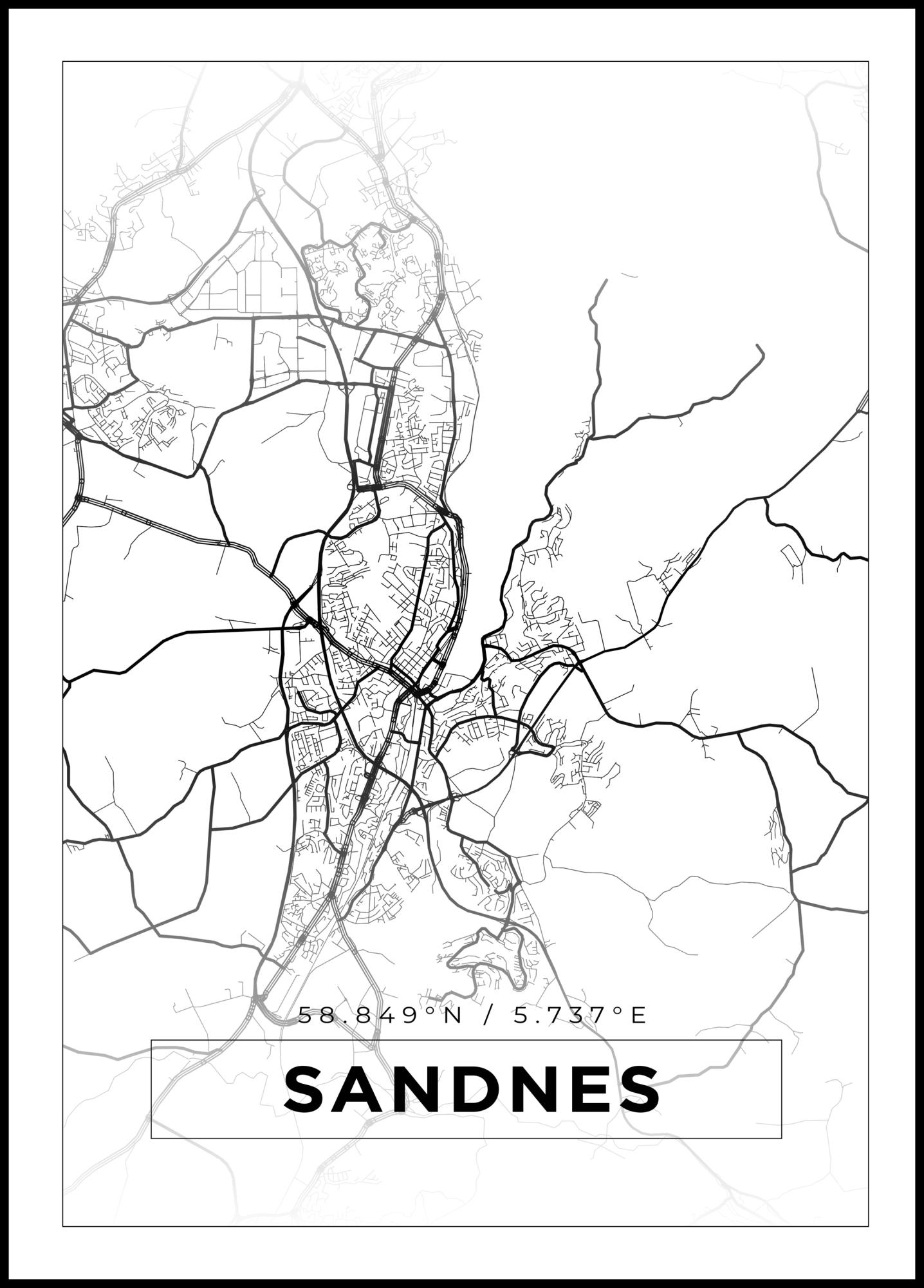 Map - Sandnes - White Poster