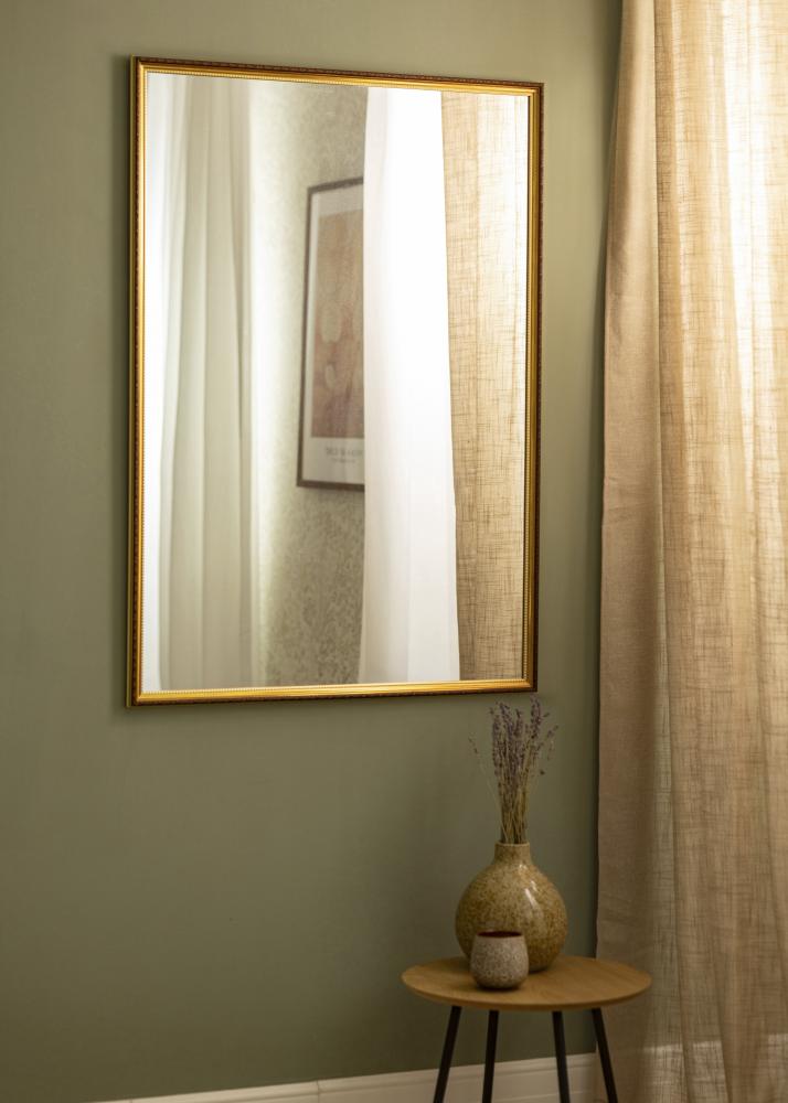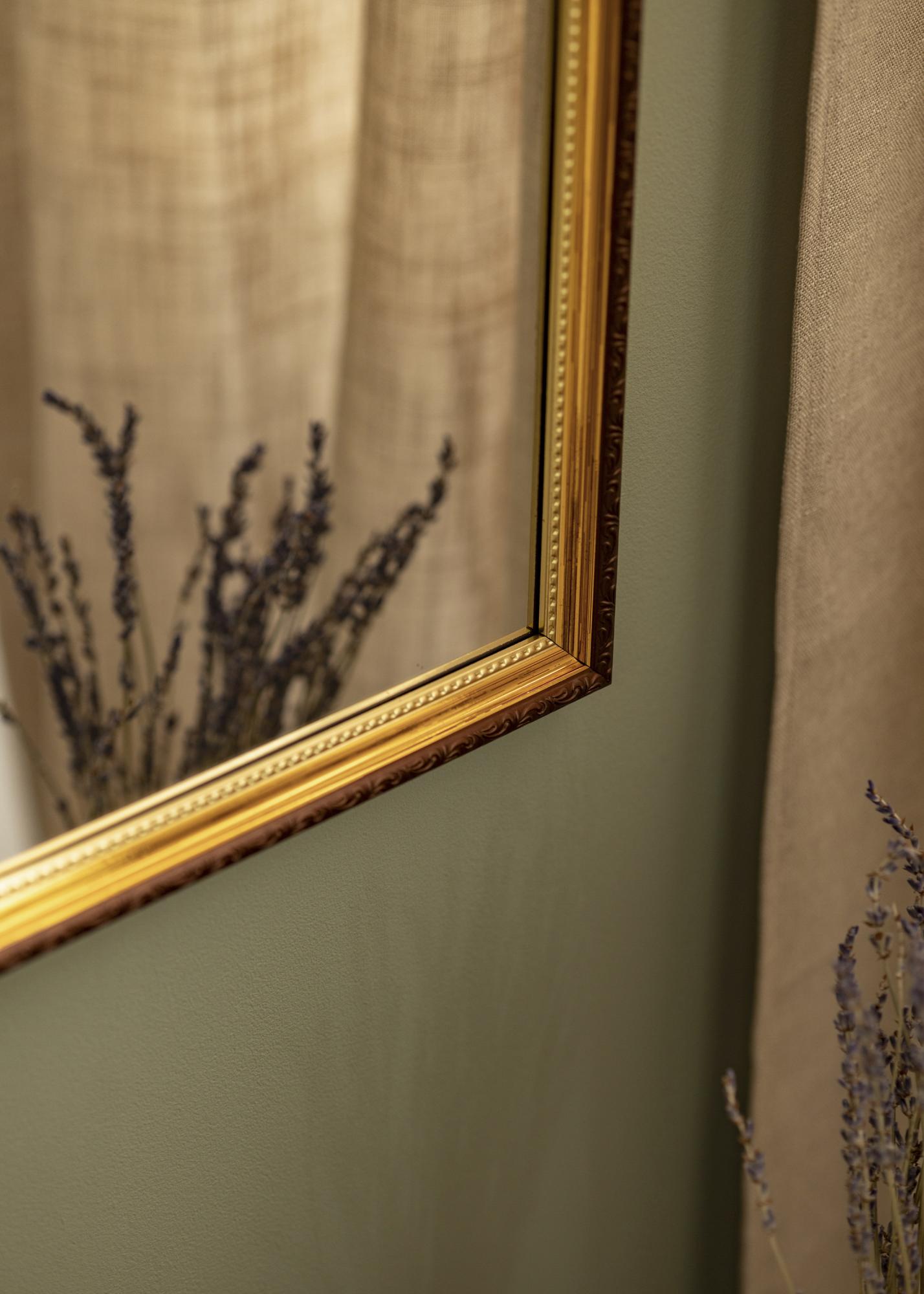 Abisko Gold is a wall mirror for those searching for a decorative mirror with an elegant retro-inspired appearance. The mirror has a 25 mm wide frame with a brown shade and an exclusive gold colour closest to the mirror glass. The frame has a beautiful ornamented profile, making the wall mirror a very stylish wall decor that fits well in a hallway as well as a bedroom.