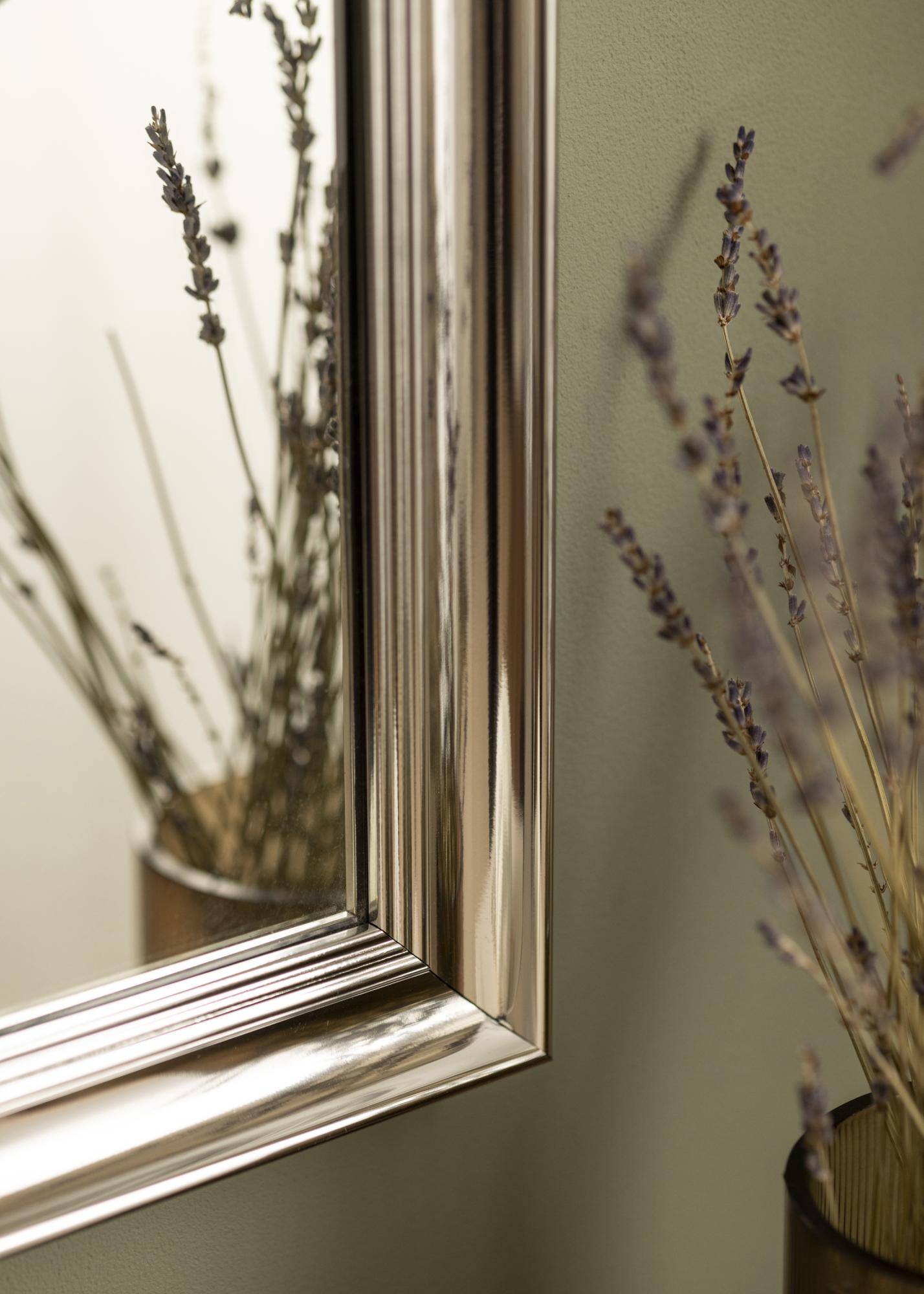 Start the frame finder »Alice Silver is a mirror with an austere, classic frame with straight lines that draws focus to the reflection.