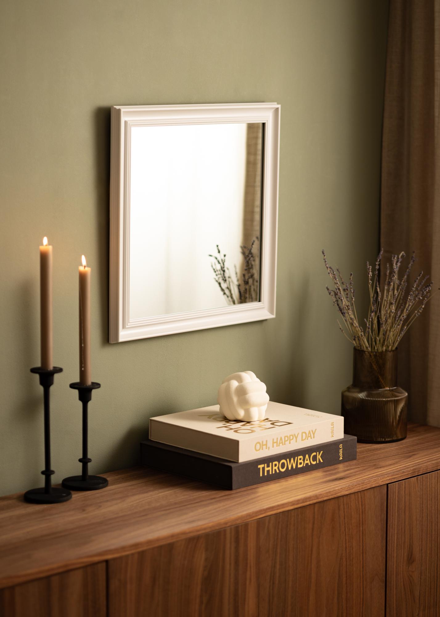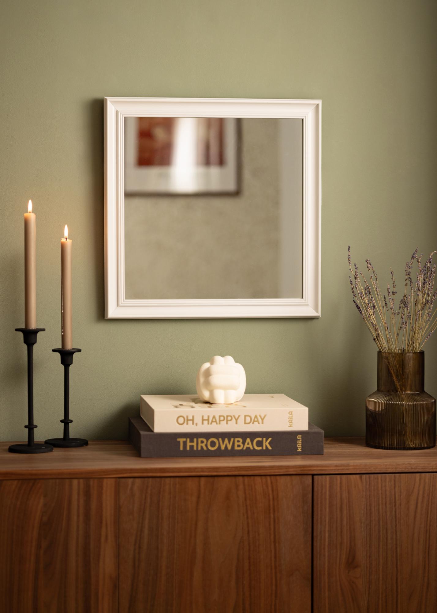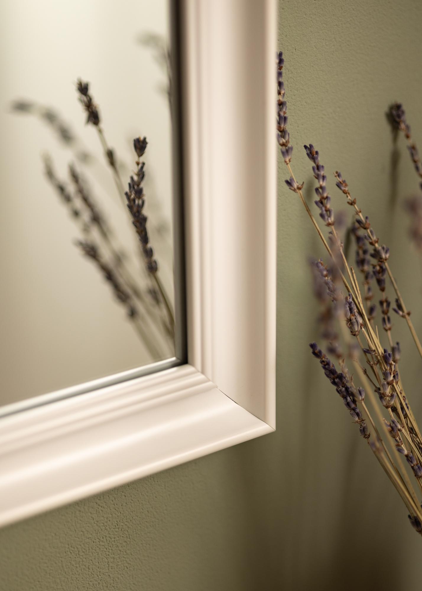 Start the frame finder »Alice White is a mirror with an austere, classic frame with straight lines that draws focus to the reflection.