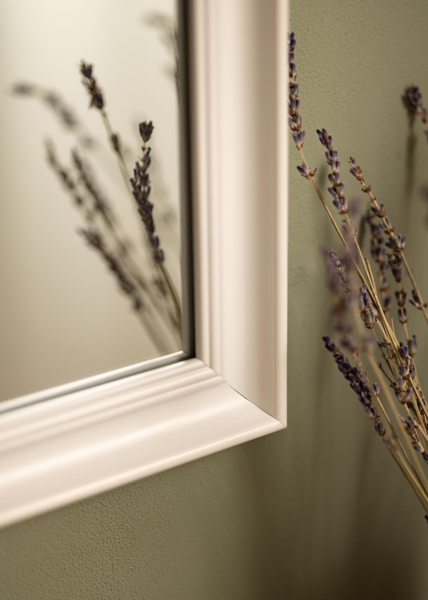 Start the frame finder »Alice White is a mirror with an austere, classic frame with straight lines that draws focus to the reflection.