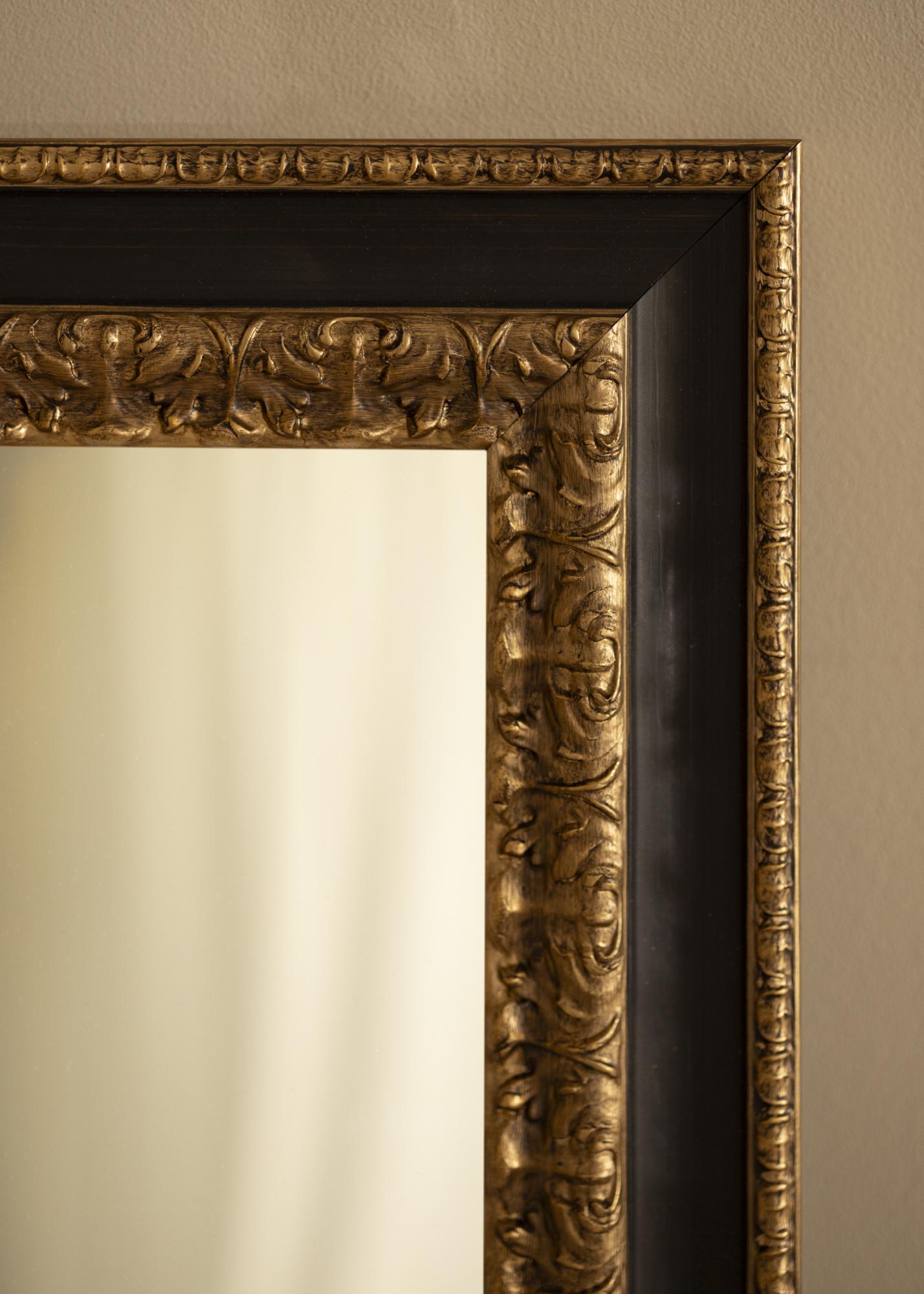 Drottningholm Gold is a beautiful mirror in a retro style made in Italy from finger-jointed pine that's hand-painted. The mirror has a richly decorated gold look with a wide black edge that gives the frame its elegant feel.