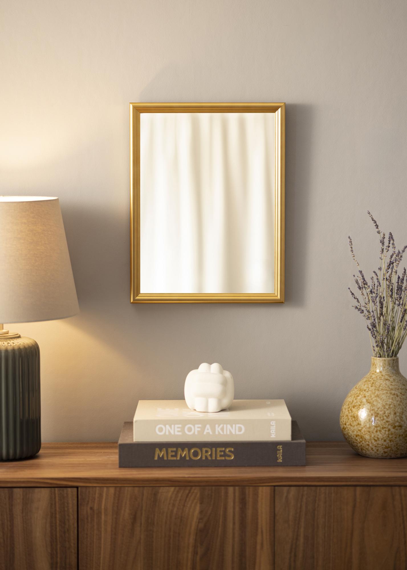 Högbo is a high-quality, elegant, gold-coloured mirror that's perfect when you're looking for a luxurious mirror that's deep enough to stand slightly off the wall.