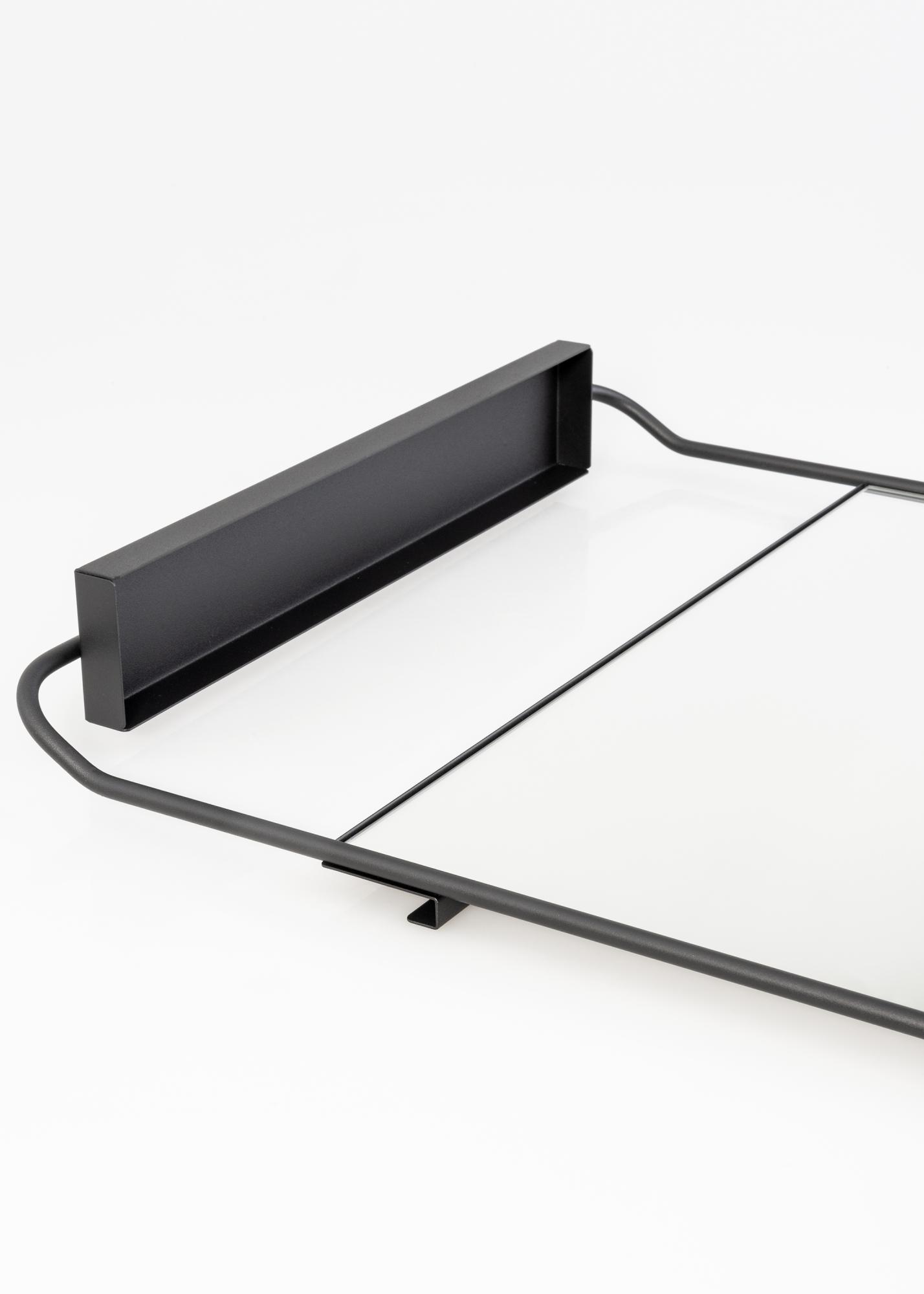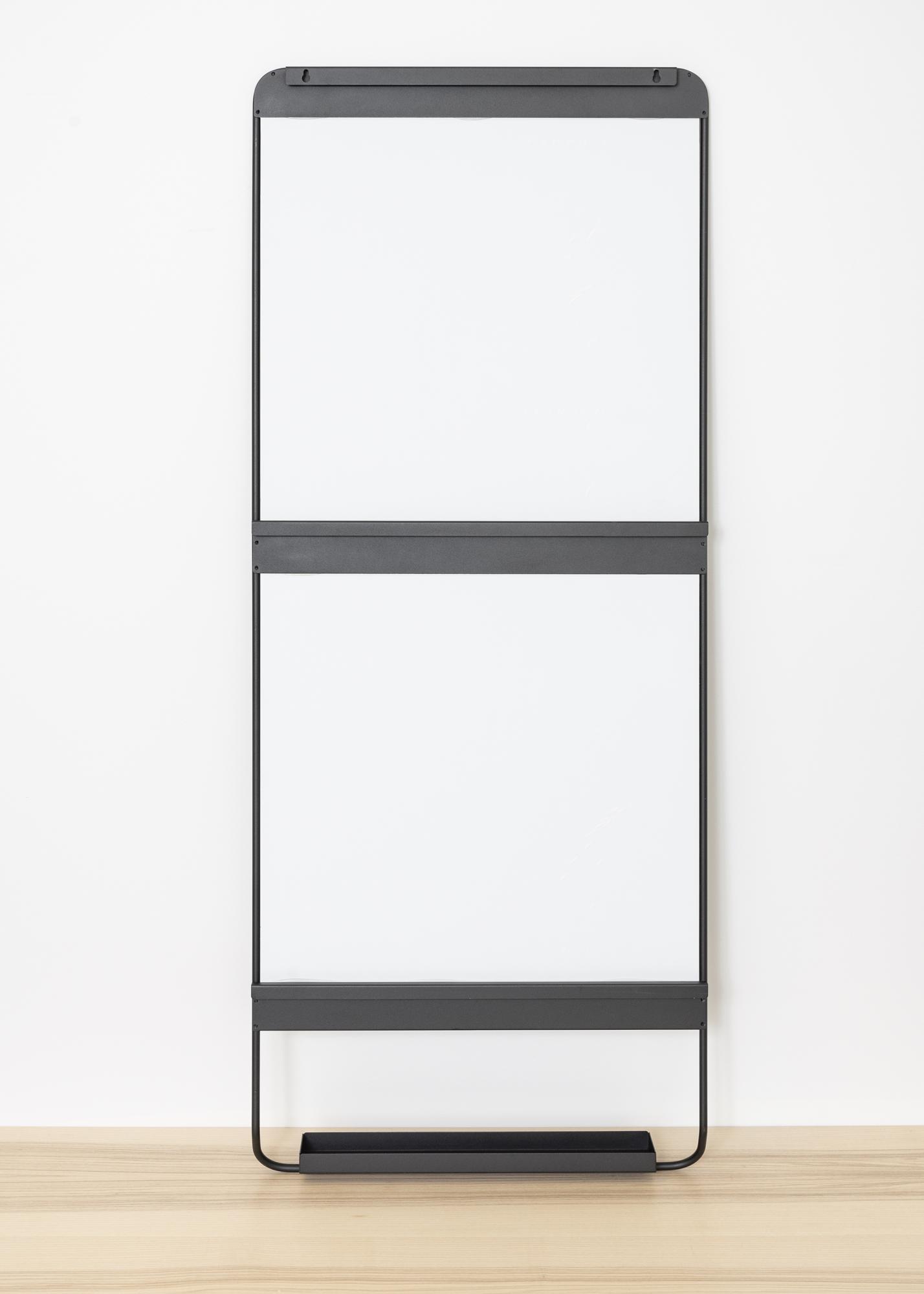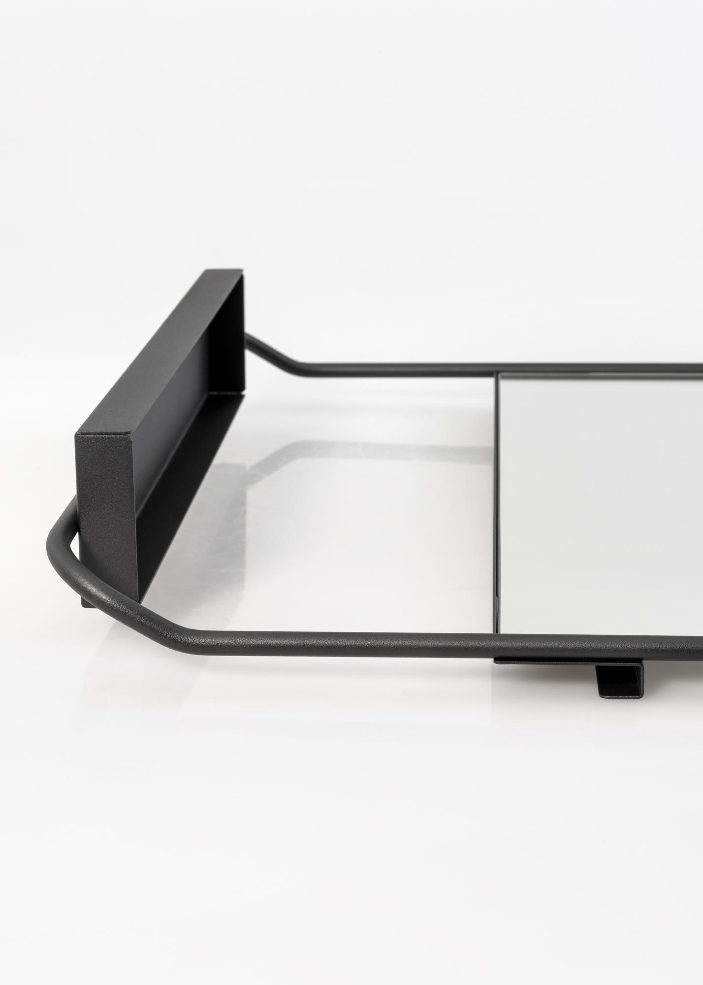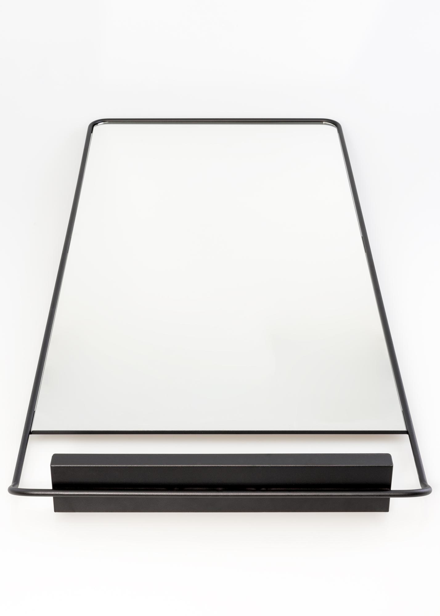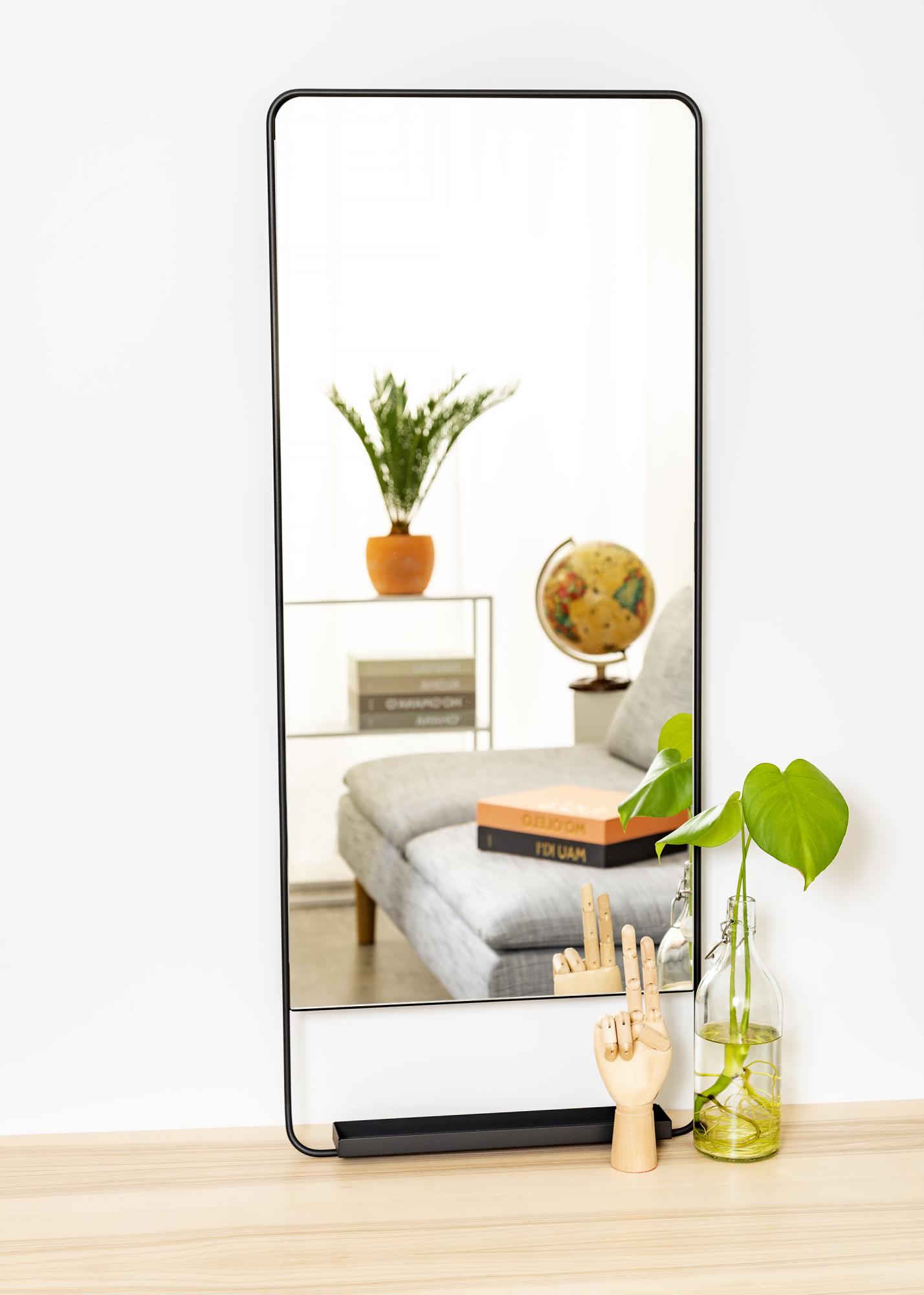 A mirror with a shelf from House Doctor. The mirror has a wonderful, timeless design with rounded corners and a narrow black metal frame. Perfect in the hallway or as a gorgeous detail in the bedroom.
