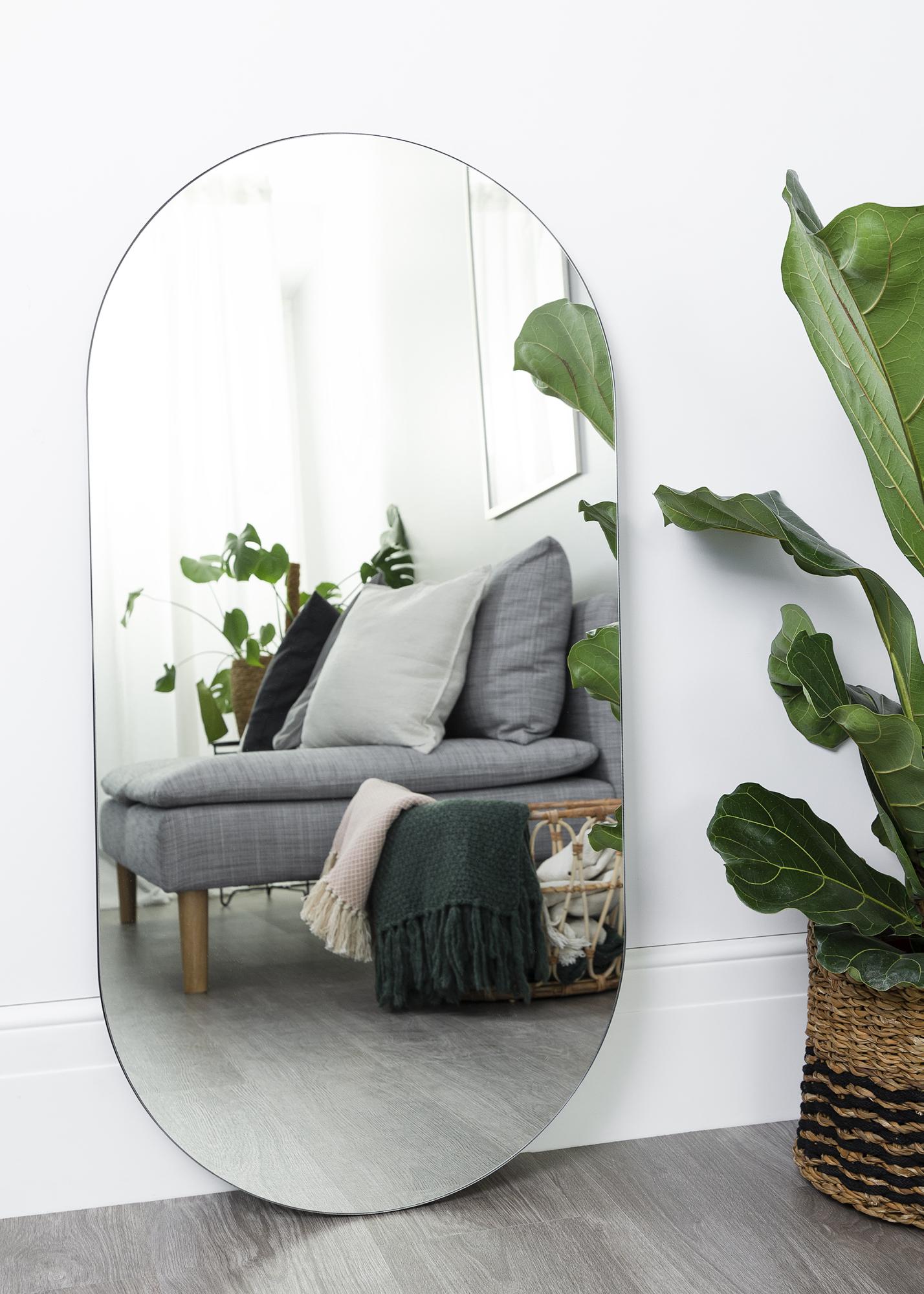 Elegant ovular mirror from House Doctor that can be hung vertically or horizontally. Perfect for the hallway or the dressing room, for example. The mirror is wet room certified and can therefore also be used in bathrooms.