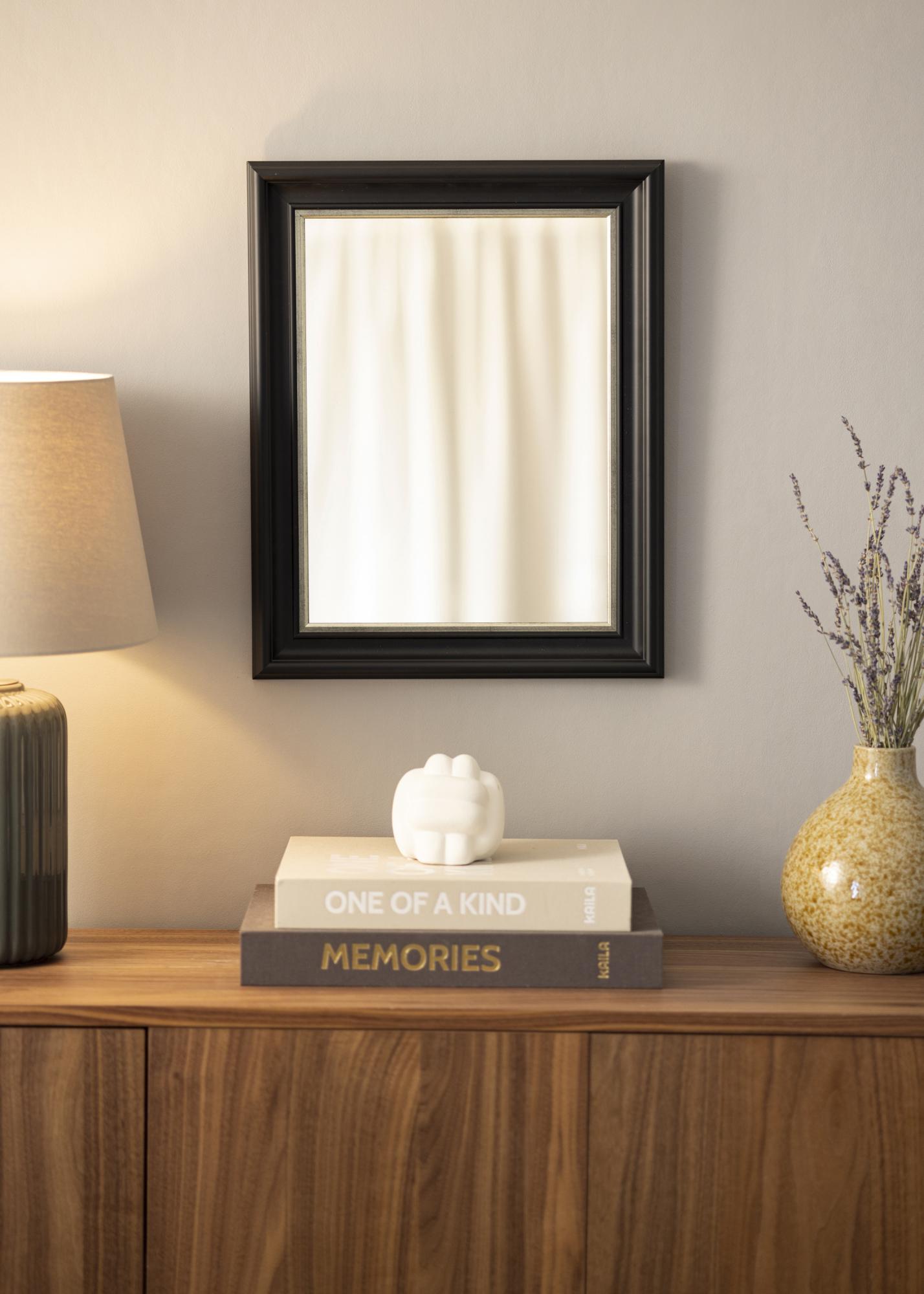 Mora is one of our most exclusive mirrors, and has a beautiful, wide wooden frame that's guaranteed to get noticed. Around the mirror glass is an edge in brushed silver that gives the mirror its exclusive appearance.