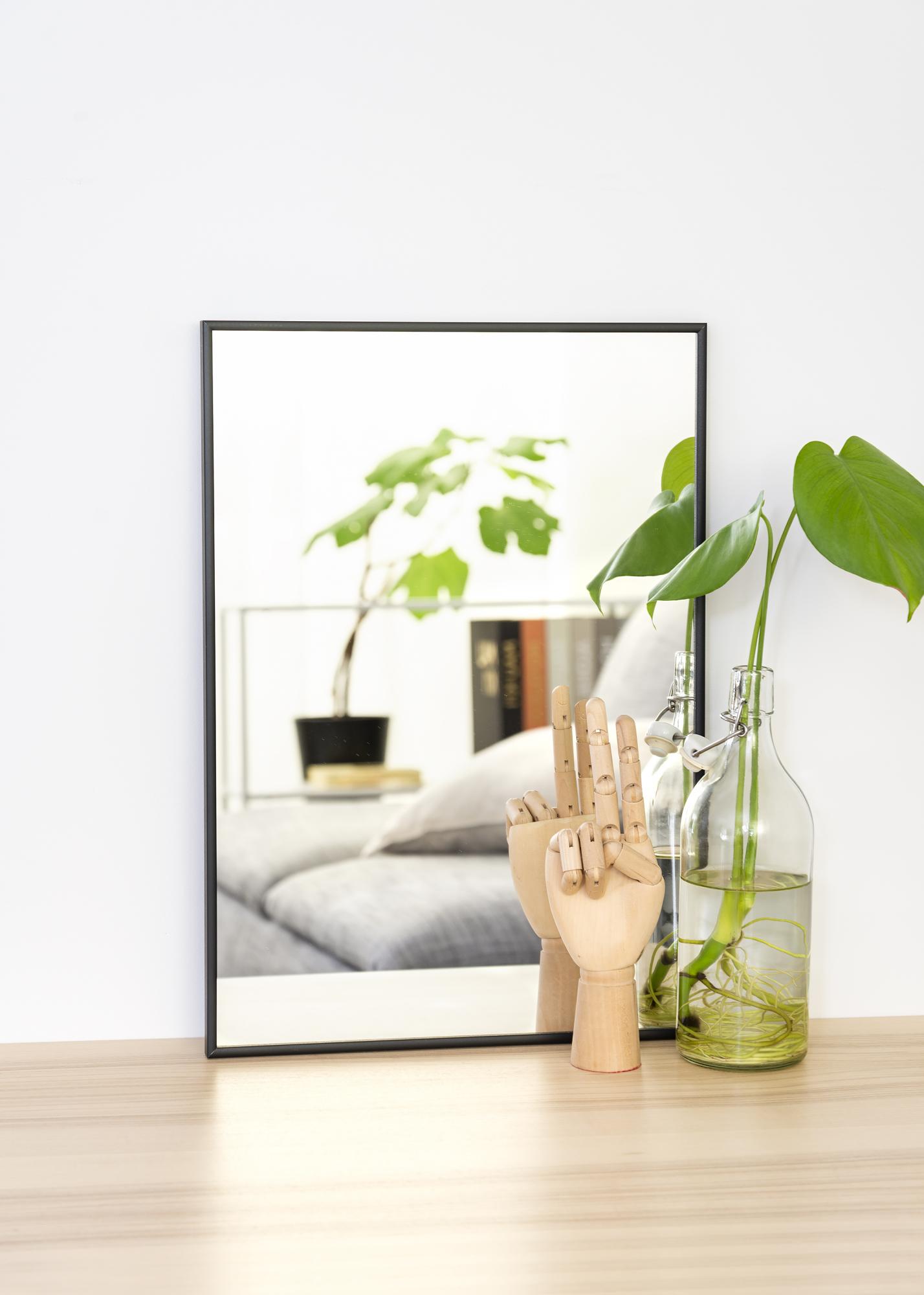 Sku:A stylish mirror with a black aluminium frame, designed by Danish brand Høi. The mirror is equipped with smart wall mounts, making it easy to hang.