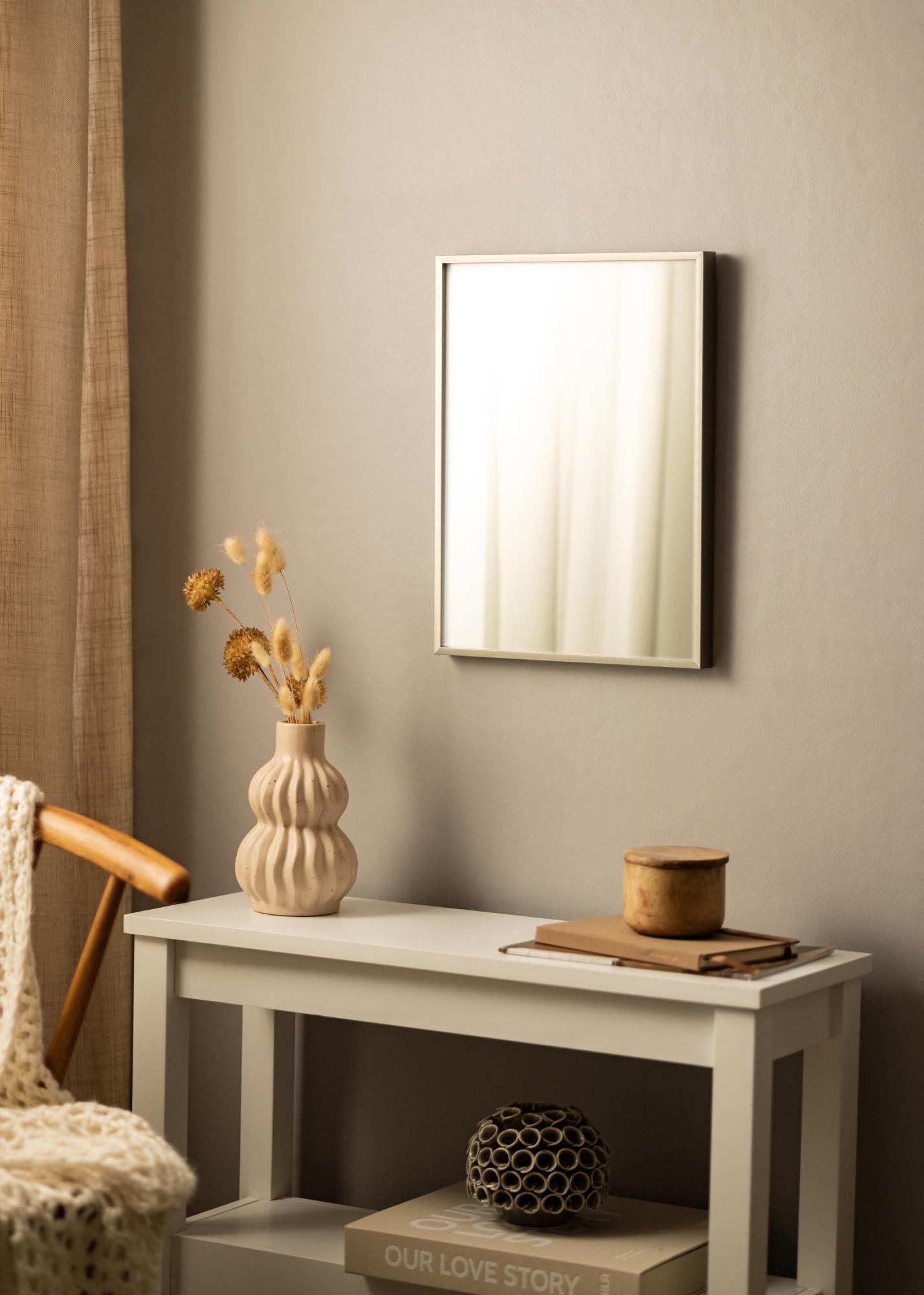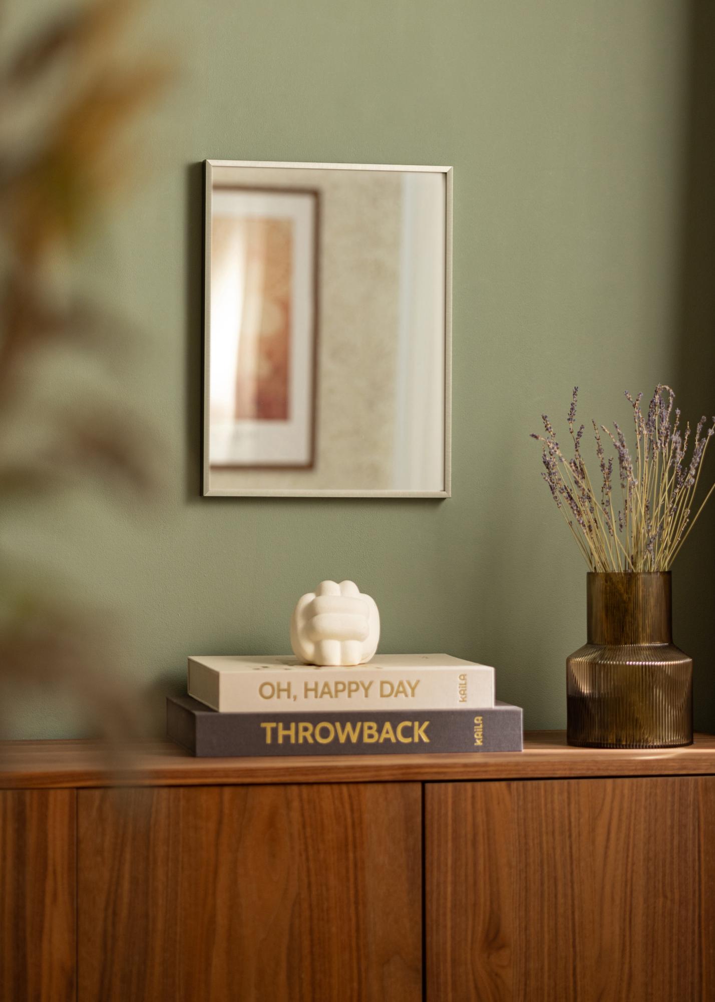 This mirror has a beautiful silver color that gives a timeless and sophisticated impression. The frame is 7.8 mm wide and made of aluminum, providing the mirror with a robust and durable construction while maintaining a light and smooth feel. The depth of 25.9 mm ensures the mirror sits securely against the wall, offering an elegant appearance.