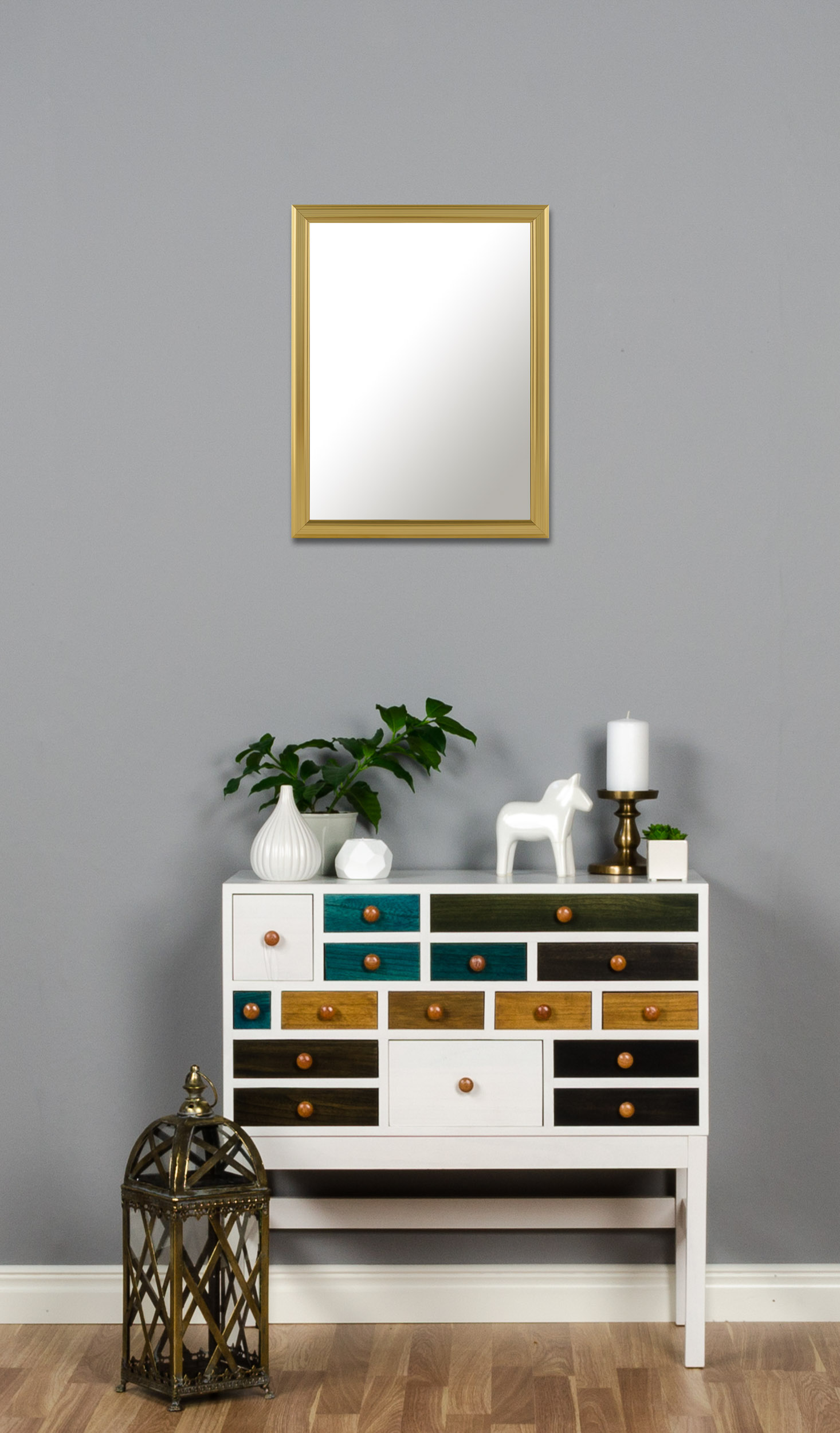 Are you planning to match gold-coloured frames and other furniture and accessories with a golden mirror? Then we have a number of beautiful designs to choose from! This one has a pleasant look with discreet stripes in different tones of gold.