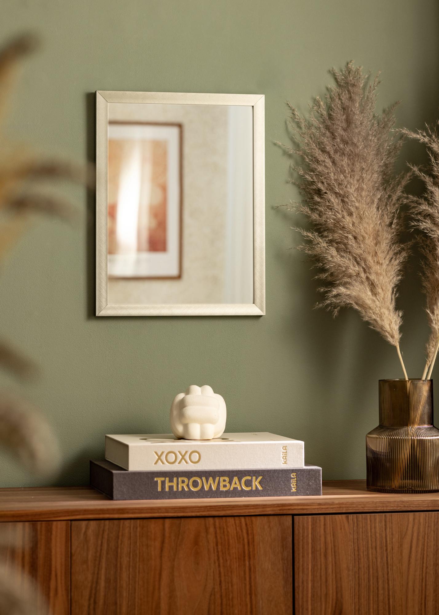 A stylish, modern mirror with a brushed aluminium frame that looks good in all stylishly designed homes. The grey metal gives a cool look and allows the mirror to take its place on the wall discreetly, without competing with other accessories. Despite its sleek design, it feels solid and stable. Combine the mirror with furniture and accessories in metal and photographs or prints in similar frames for a uniform look in the room.