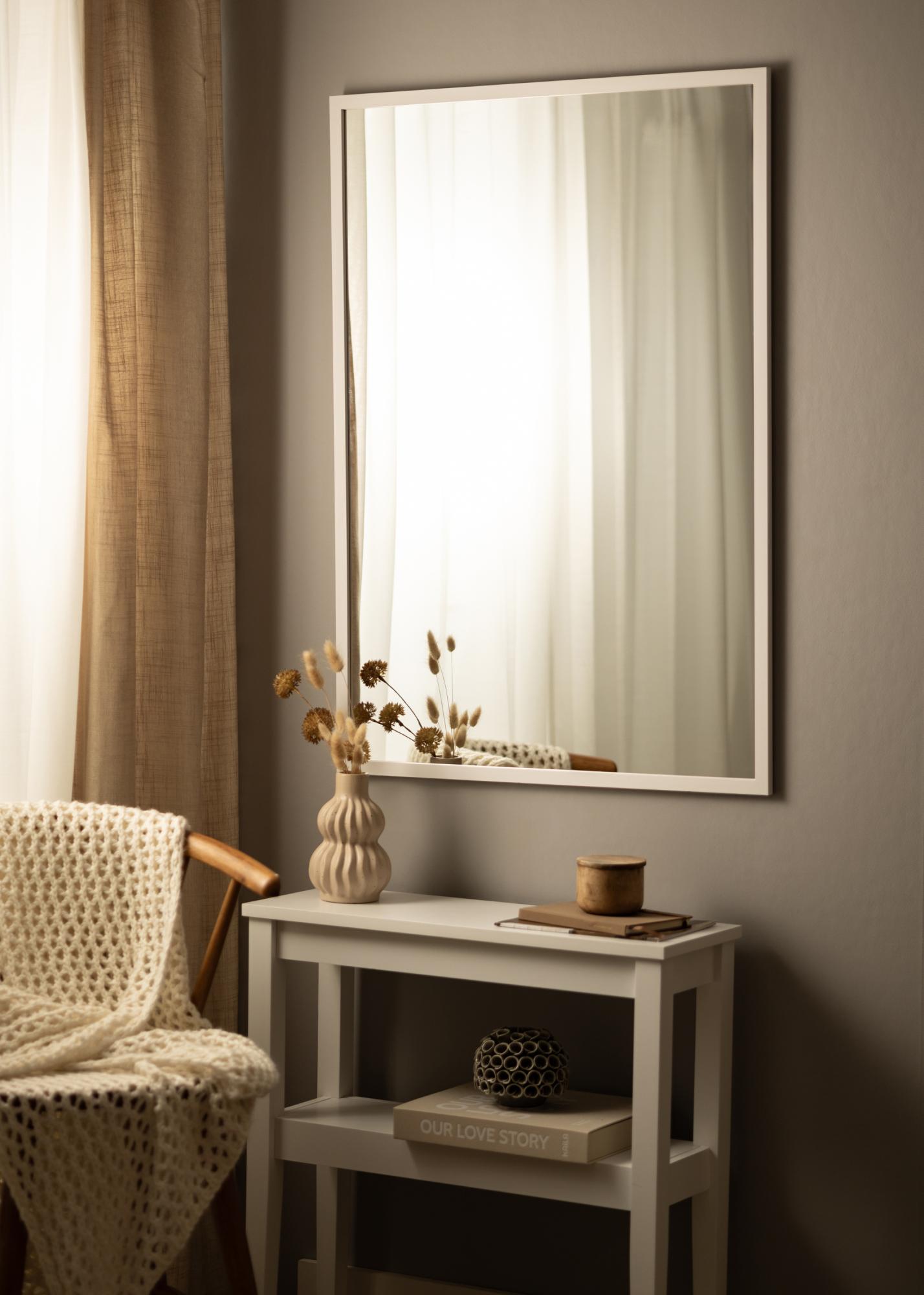 The mirror is part of a series of wall mirrors in various designs, of which this is a 70x100 cm variant with a white frame.
