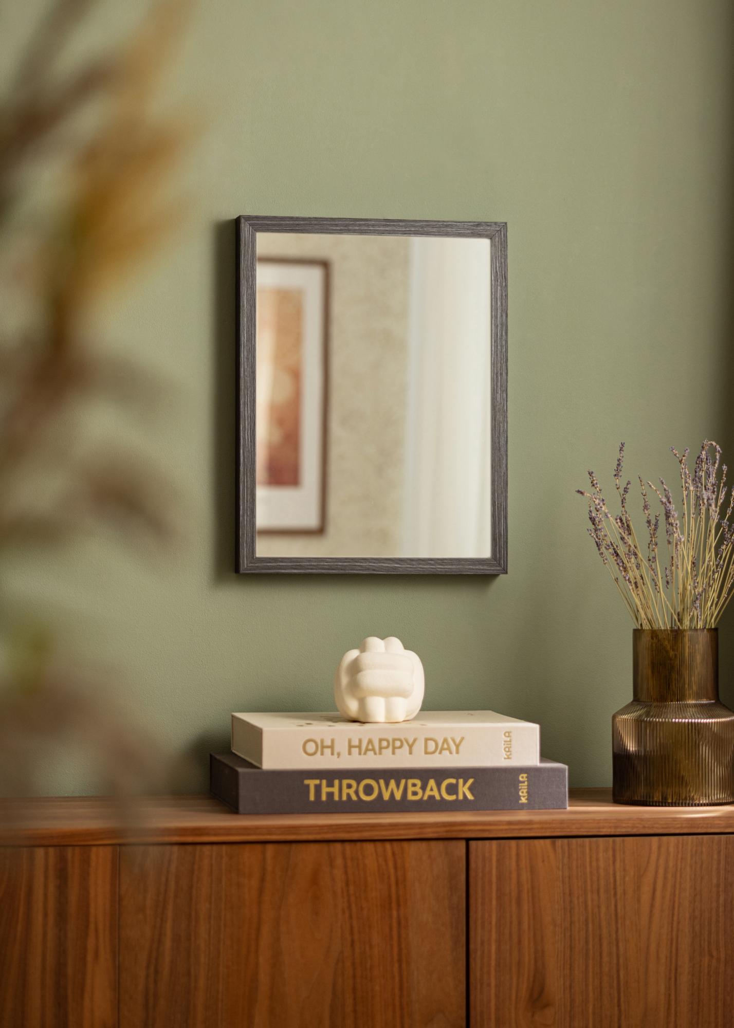 Mirror Wood Selection Grey I is a custom-made mirror crafted by us to suit your specific needs. With its grey color and dark-stained wood finish, this mirror offers an elegant and timeless design that blends into most interior styles. The natural grain of the wood runs along the edges, giving the mirror a unique character, while the matte surface enhances the authentic wood feel.