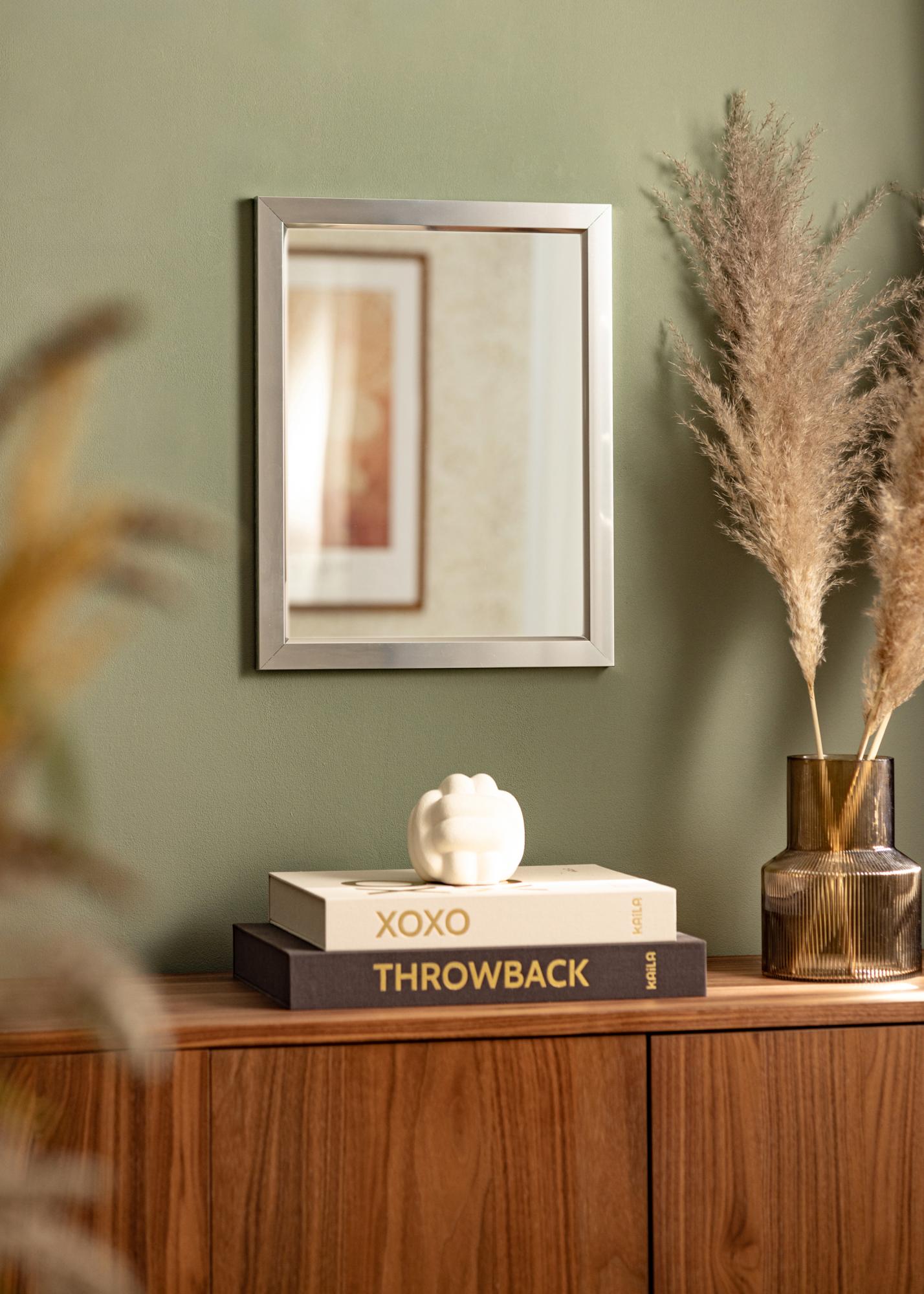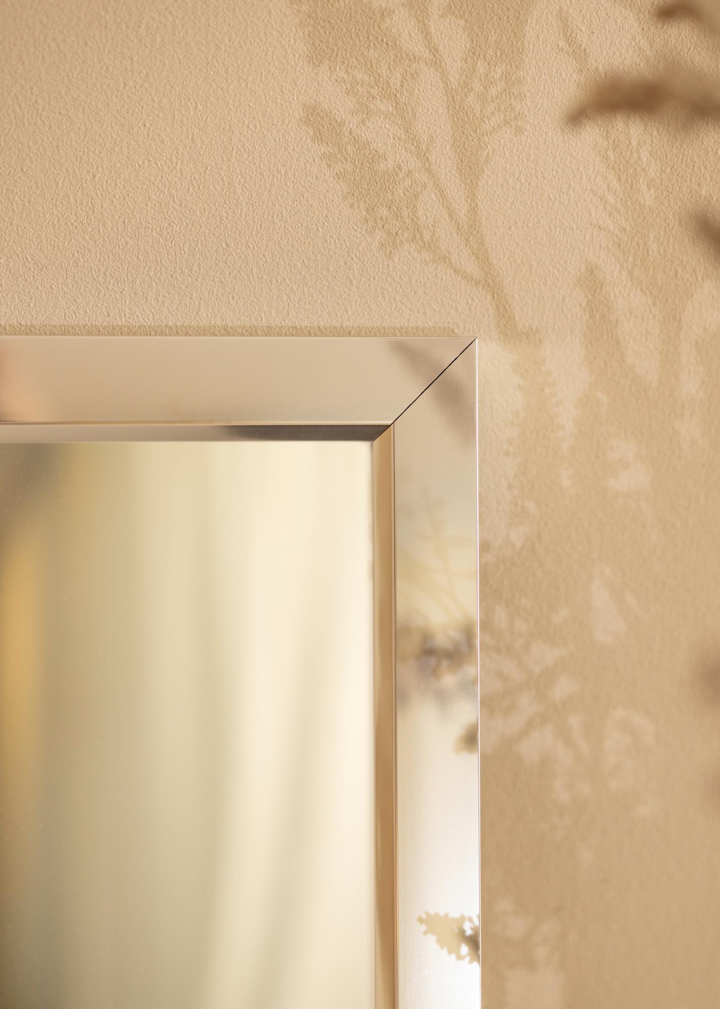 A cool, stylish mirror with a high-gloss silver frame and a mirror glass feel. The high-quality aluminium frame is made in Germany. The high-gloss look of the mirror frame attracts the eye and reflects light effectively, which is great if you want to use the mirror to light up a dark room. The mirror's simple design means it fits well into both minimalistic, modern interiors and in homes in which the new and the time-worn are mixed.