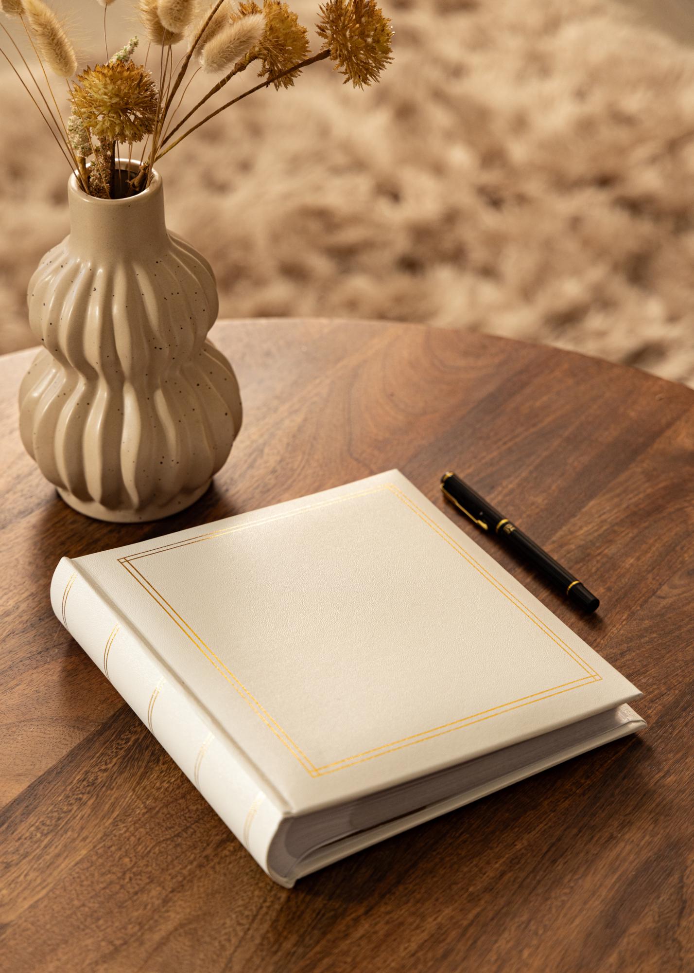 Store your finest photos in a classic and elegant photo album that comes in a tasteful white. This square album has a sturdy and durable cover, with double gold lines along the edges and on the back. Inside you will find photo pockets for 200 pictures with the dimensions 10x15 cm. There are lined writing fields at each pocket. A nice, flexible way to organise your memories!