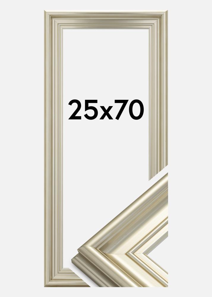 Mora Premium Silver is one of our finest photo frames. Made of wood from our wonderful Swedish forests and assembled in our own frame workshop. This means that we can promise a quality above the average. The picture frame has a soft gold-coloured profile in the old, painted style, with a width of 57 mm. Perfect for your finest photos!