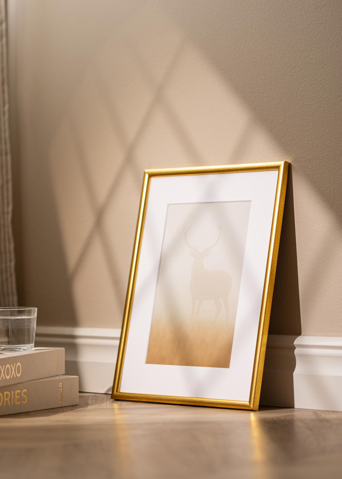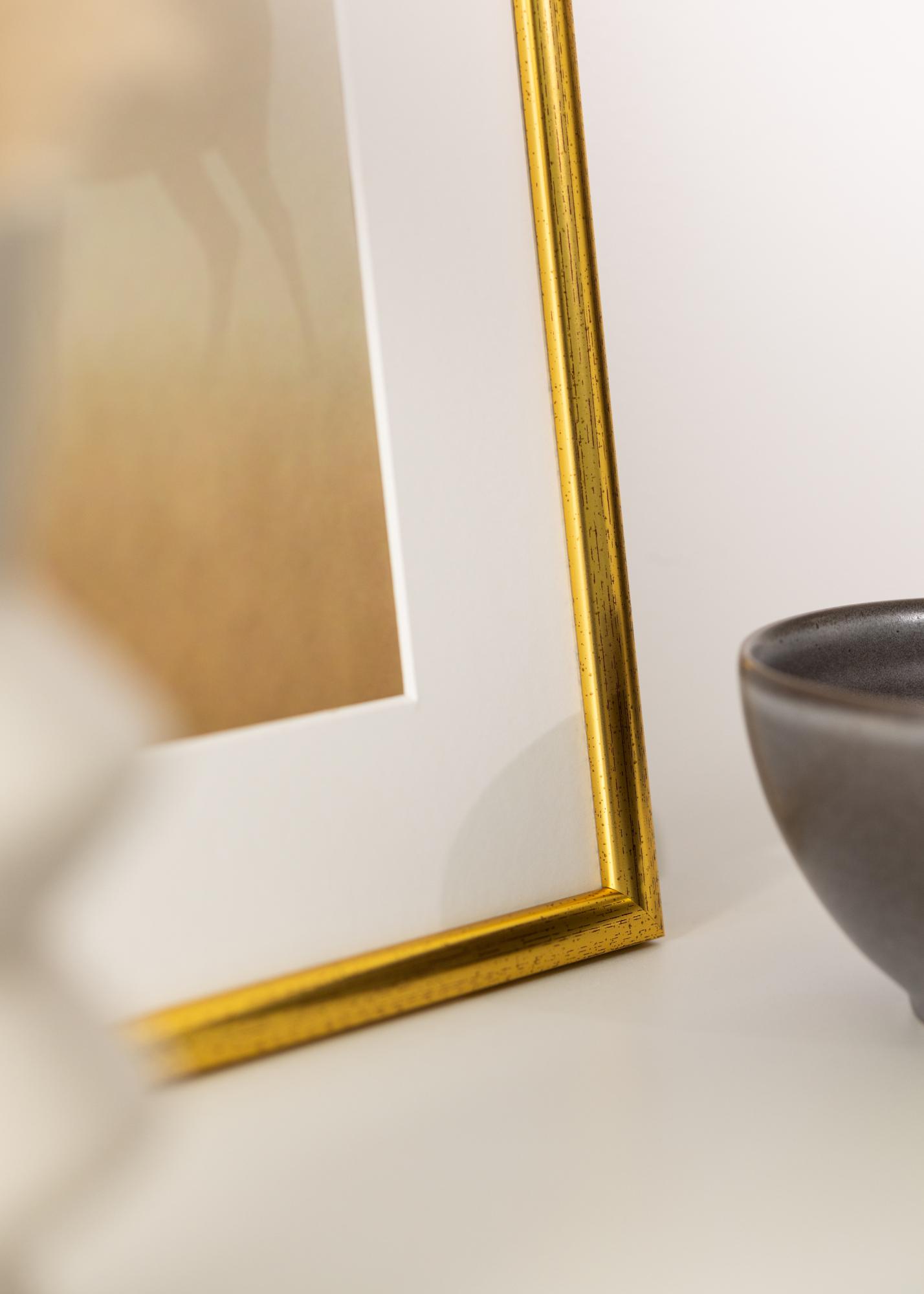 Newline Gold has a narrow picture frame profile (15 mm) that gives focus to the subject in the frame. The picture frame has a red-speckled gold profile that gives an old-fashioned appearance.