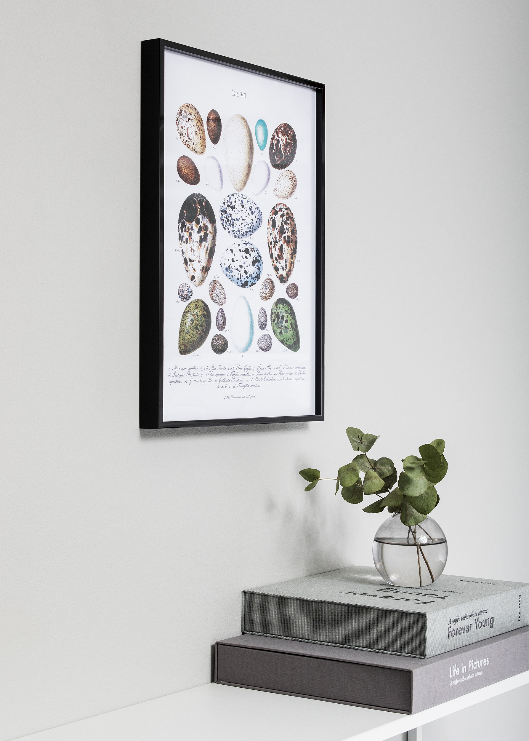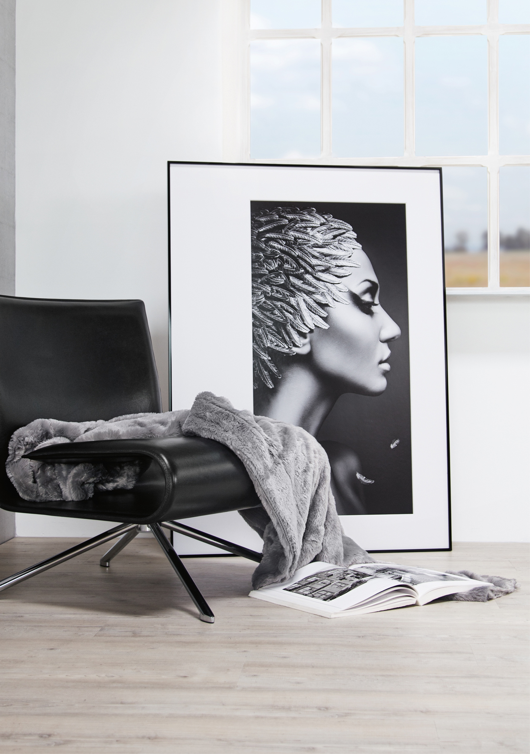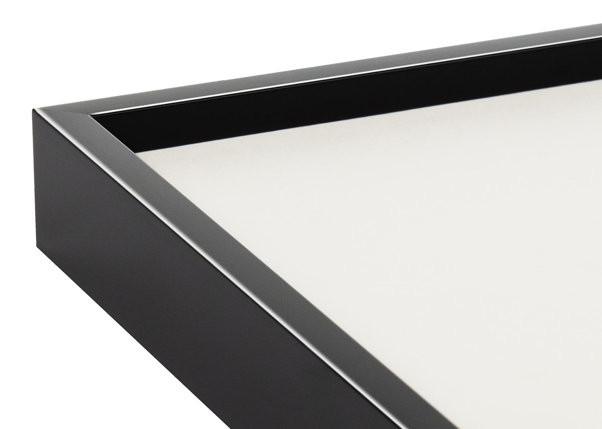 Elegant premium picture frame with a high-gloss narrow black moulding that fits perfectly into a modern, stylish interior. The surface of the picture frame and the minimalist feel of the sleek design make it great to use for graphic posters and black and white photographs. The photo frame is made of aluminium and is available in many different sizes, which makes it a good alternative when you want to create a picture wall with images in several different formats, that are held together by the choice of picture frames.