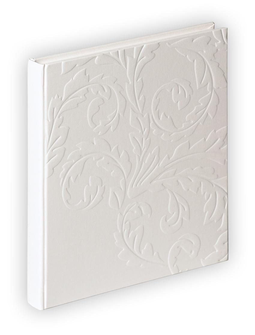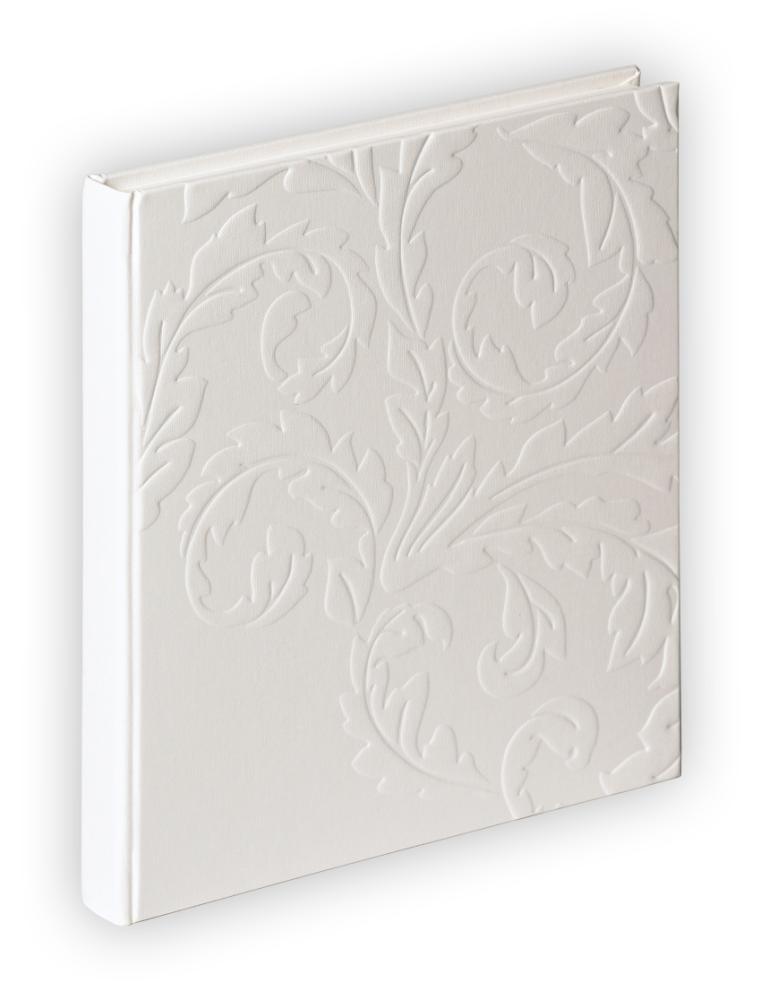 Luxurious, cream-coloured guestbook with binders made of linen and embossed patterns. Perfect when you are looking for a guest book that works just as well for the wedding, as for the family reunion.