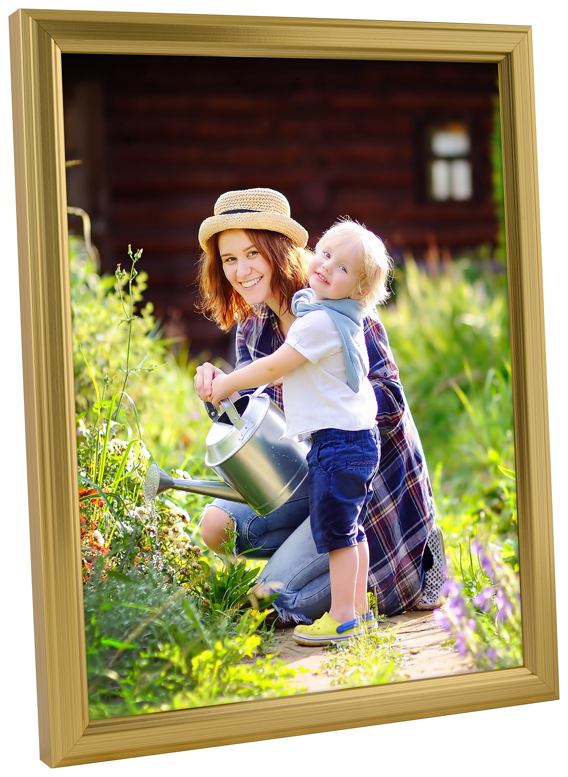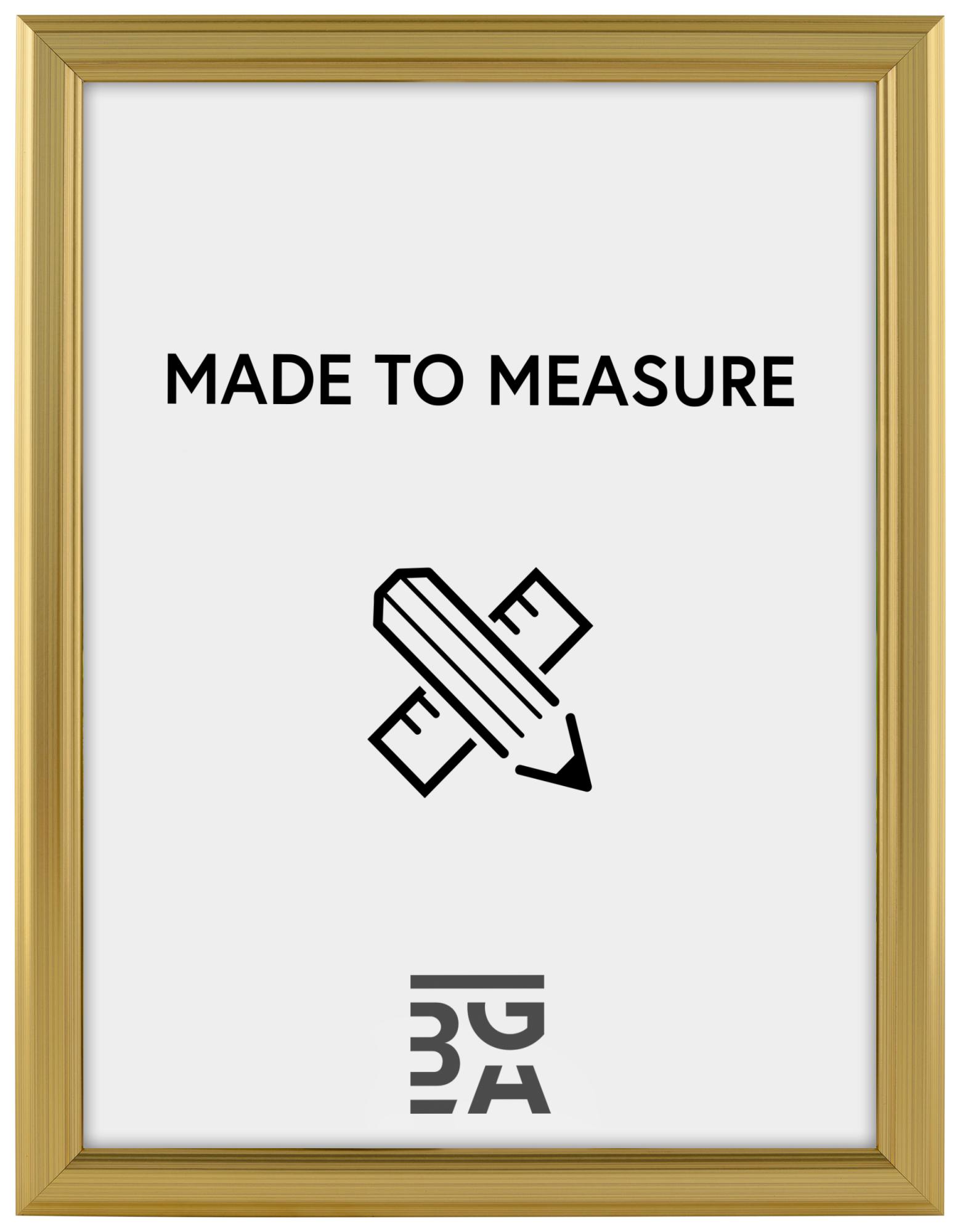This custom-made frame features a 24 mm wide frame moulding and a depth of 30 mm, providing a stable and robust framing. Made of pine, it offers both durability and aesthetics. The frame's golden color creates a warm and inviting atmosphere, making it ideal for showcasing your most cherished images or artworks.